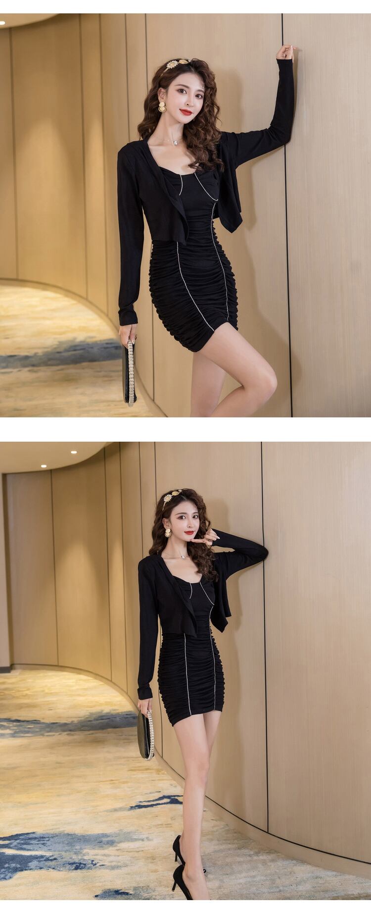 春秋のファッション新着コンタブル 2 ピース女性セットショートジャケットとストラップミニペンシルドレス無地 OL エレガントなセット スプリング 春物 オータム 秋物 ソリッドカラー