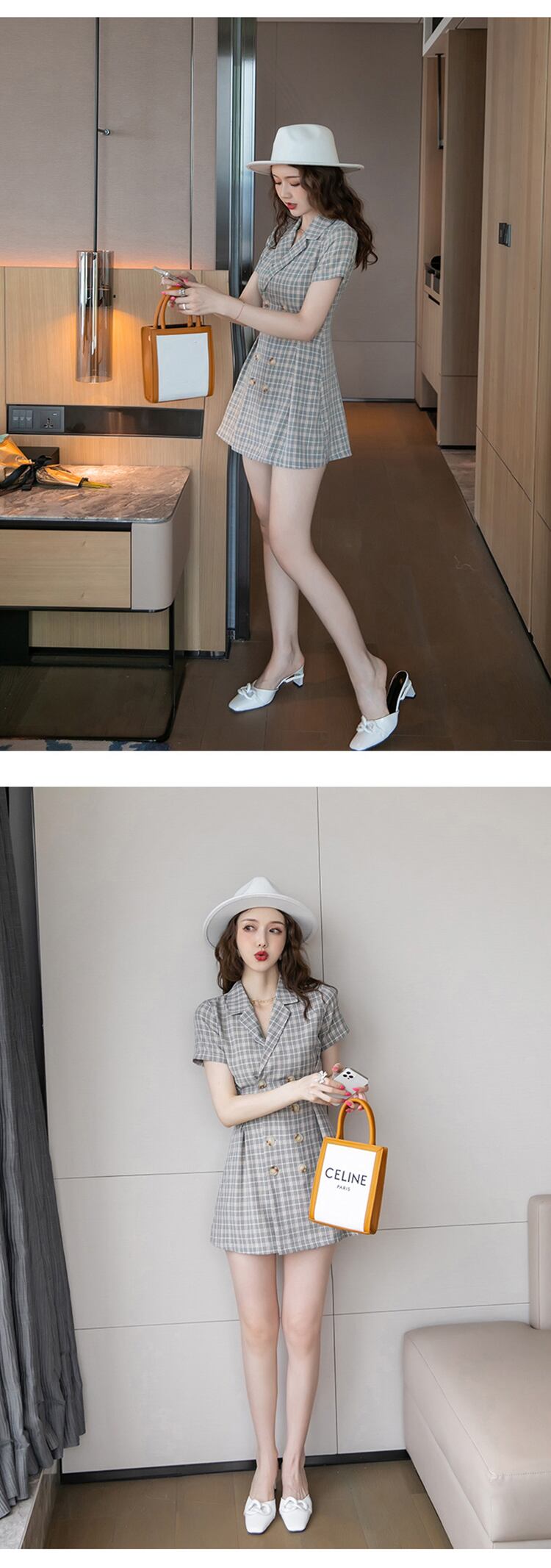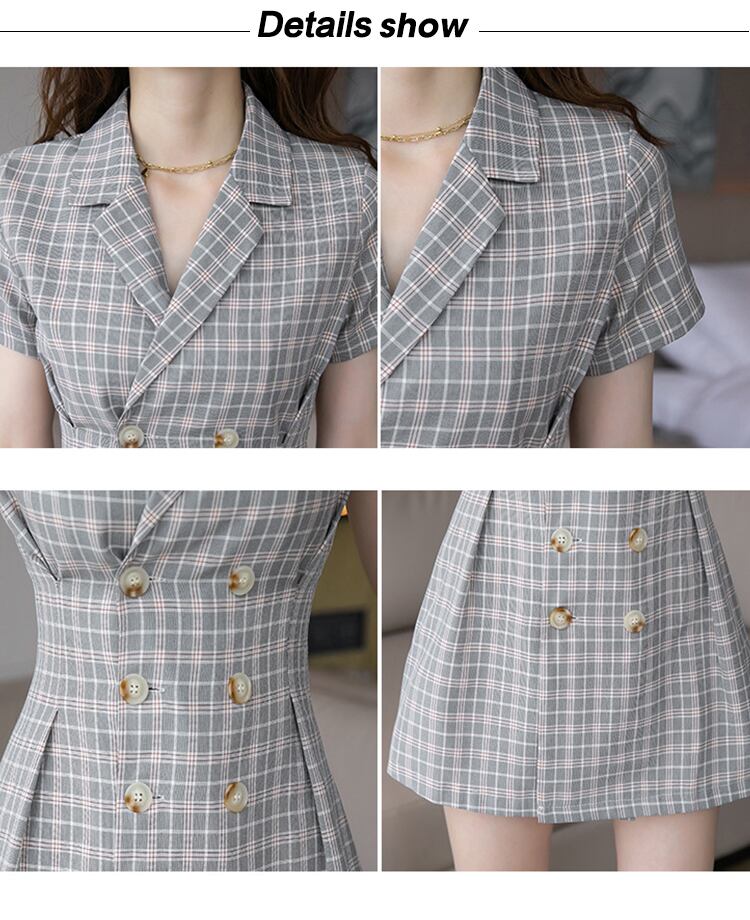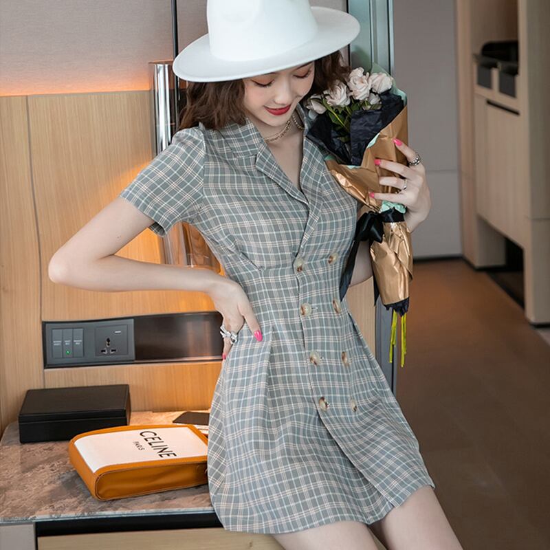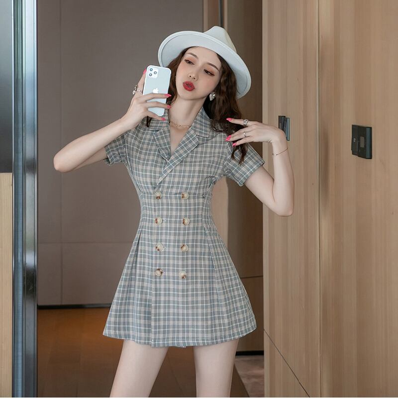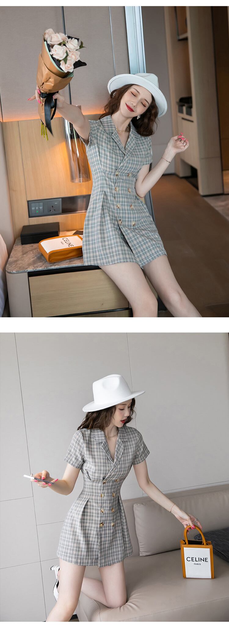 夏のミニ ドレス ストリート セクシーな半袖ダブル ブレスト チェック柄プリント ショート ドレス ハーフスリーブ サマー 夏物