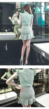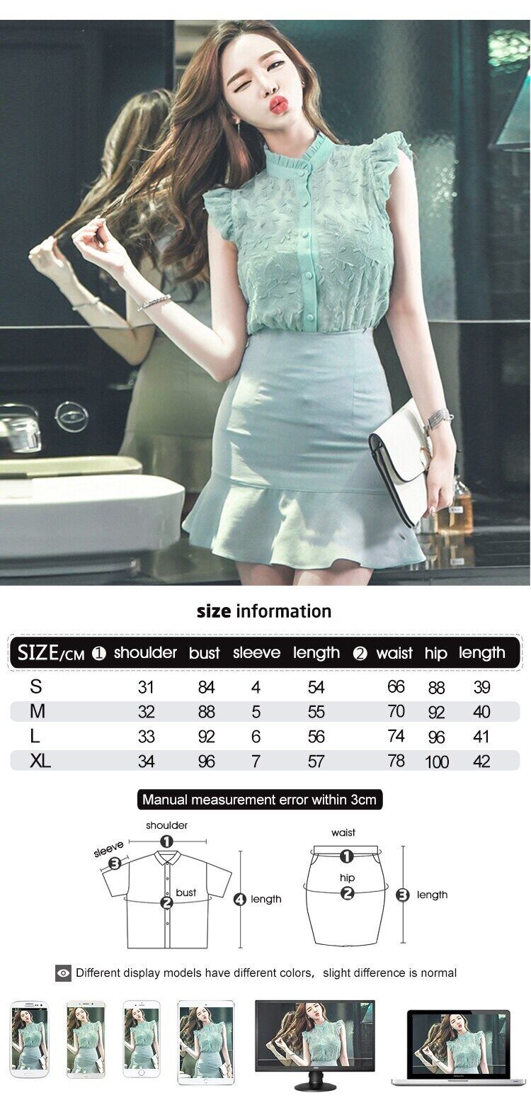 新着ファッション女性セット夏エレガントなセクシーなノースリーブ シャツとスリムなミニ スカート OL 無地 2 点セット サマー 夏物 ソリッドカラー 会社 学校 通勤や通学にも