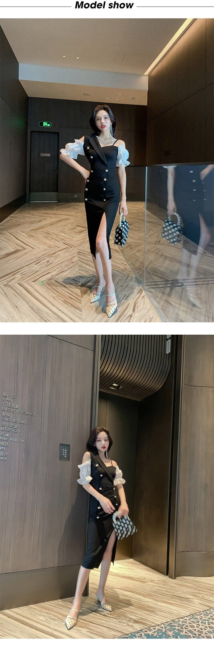 女性新着 OL mal ペンシルドレス人格スリムcomtableダブルブレスト背中の開いたペンシルドレス