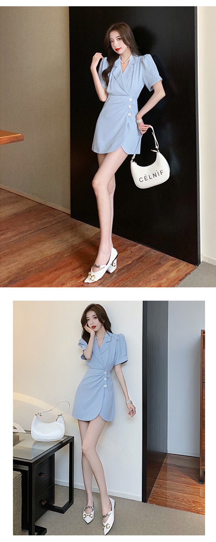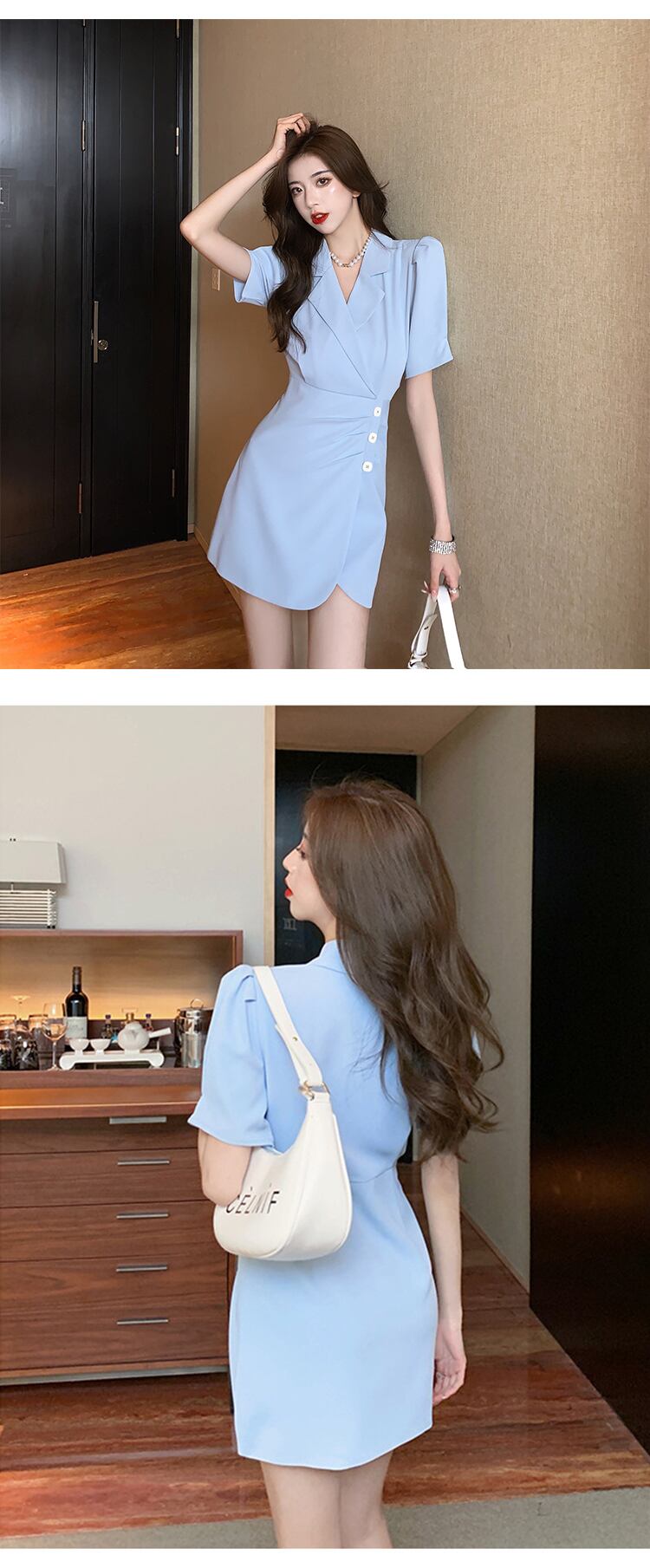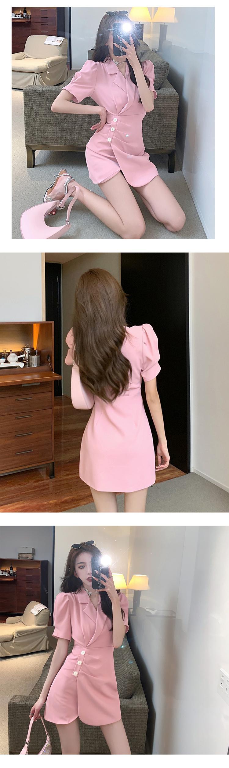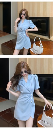 夏の甘いセクシーなミニ ドレス ストリート パフ スリーブひだ非対称ショート ドレス 大人ガーリー スウィート キュート カジュアル サマー 夏物