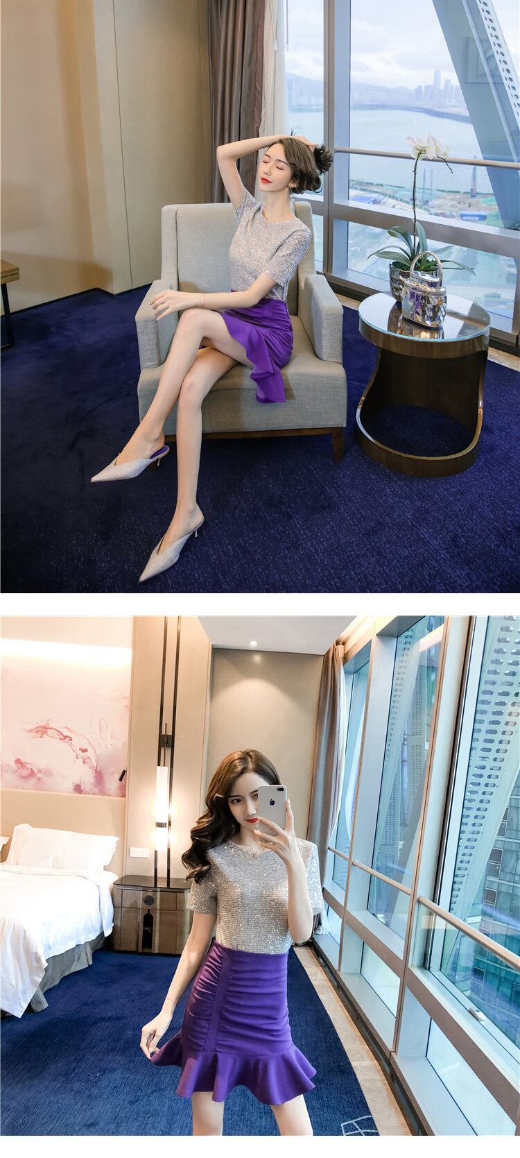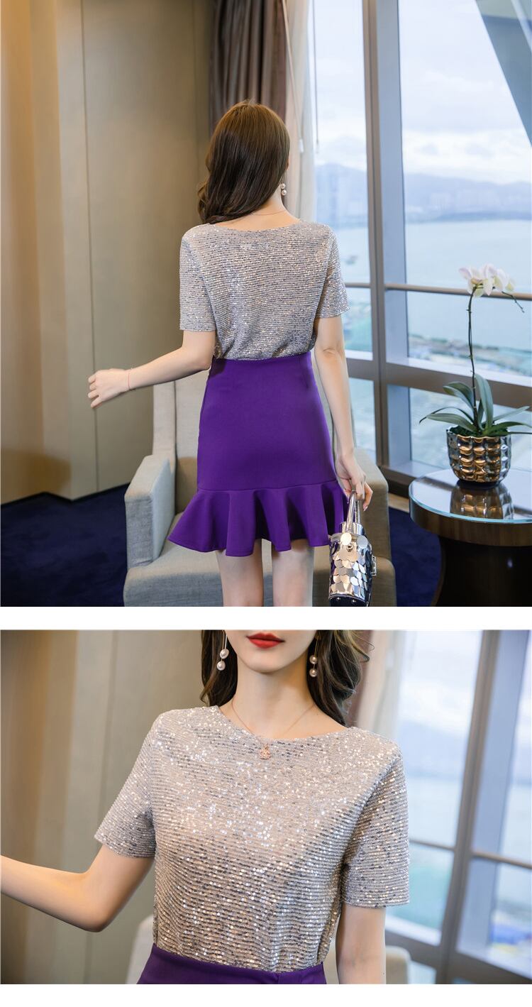 クラブ 2 ピース衣装女性光沢のあるスパンコール O ネックトップスシャツブラウスウエストミニスカートスリムセット夏 サマー 夏物 Oネック