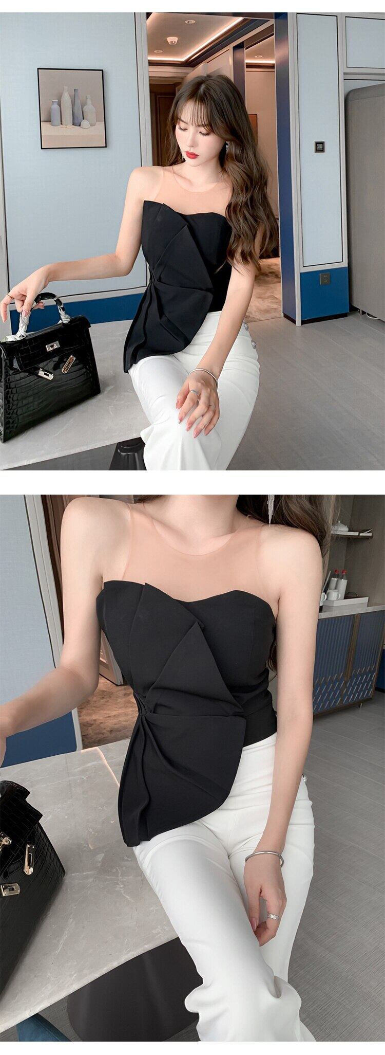 ブラウス女 ショート ブラック サマー 夏物 メッシュ スリム