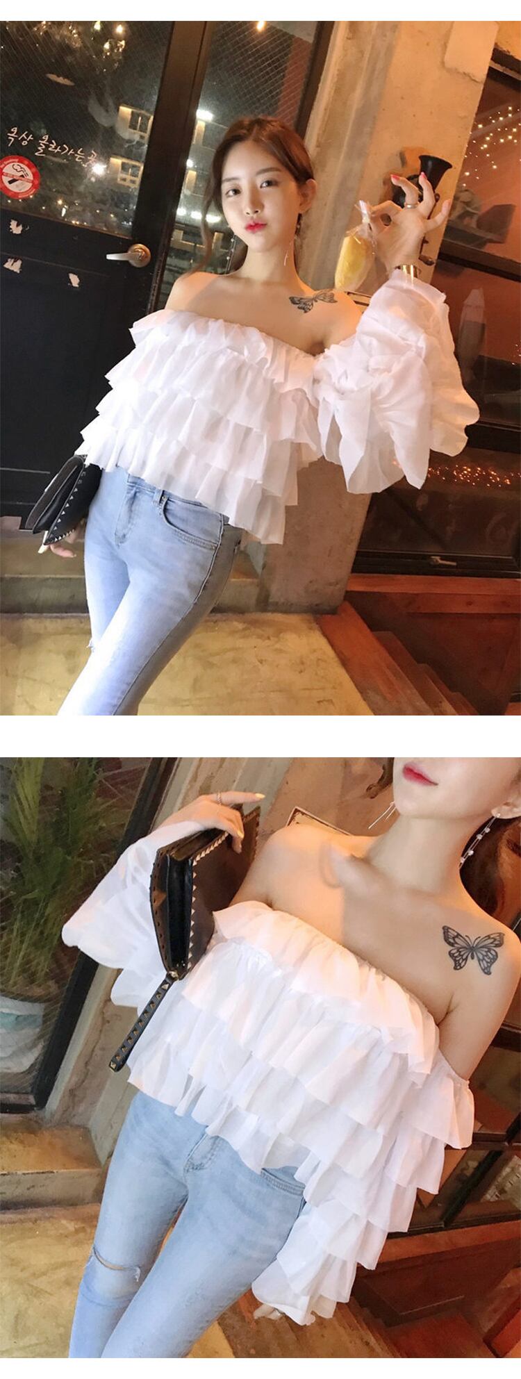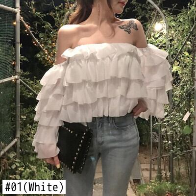 新着ファッションブラウス女性ホワイトセクシーなオフショルダーストリートフリル秋の新鮮な長袖ワイルドトレンドスリムショートシャツ ロング オータム 秋物