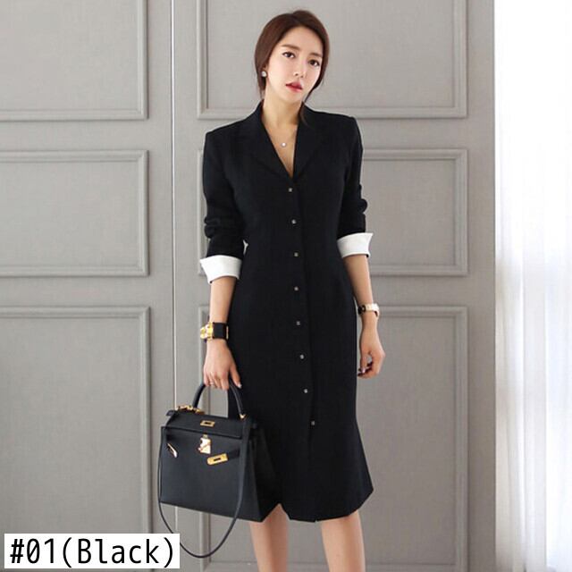 オフィスの女性のドレスブラック気質マルシングルブレストスリムミディ鉛筆通勤 Vestidos 会社 学校 通勤や通学にも