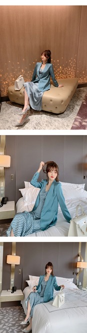 新着comtableワークスタイルドレススーツ無地ブレザーとセクシーなプリントストラップロングドレスエレガント興品質かわいい女性セット 大人ガーリー スウィート キュート カジュアル ソリッドカラー