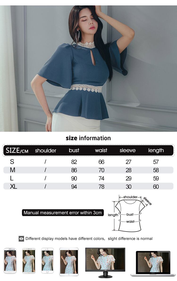 新着ファッションブラウス女性夏シフォンフリルオフィスレディ新鮮なフレアスリーブ気質ブルーワイルドトレンドスリムシャツ サマー 夏物 会社 学校 通勤や通学にも