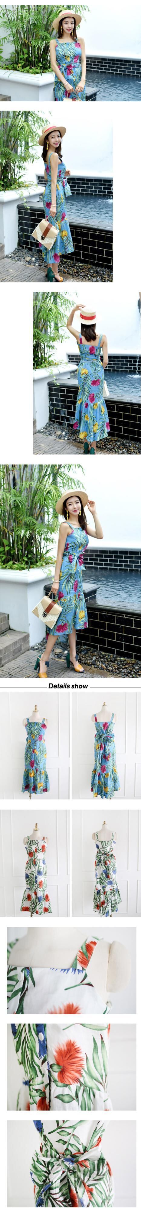 新着ファッションビーチドレス女性エレガントな夏のセクシーなストラッププリントフリル気質オフィスレディスリムマーメイド自由奔放に生きるドレス サマー 夏物 会社 学校 通勤や通学にも