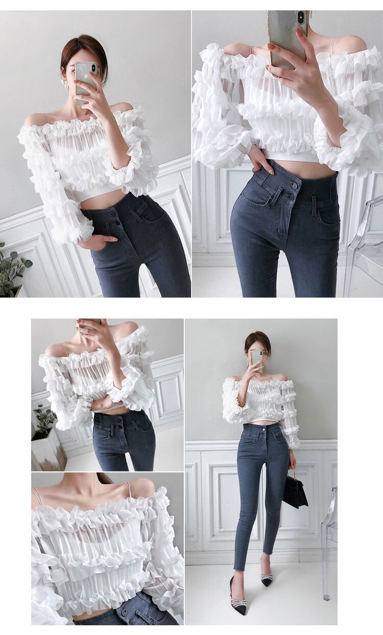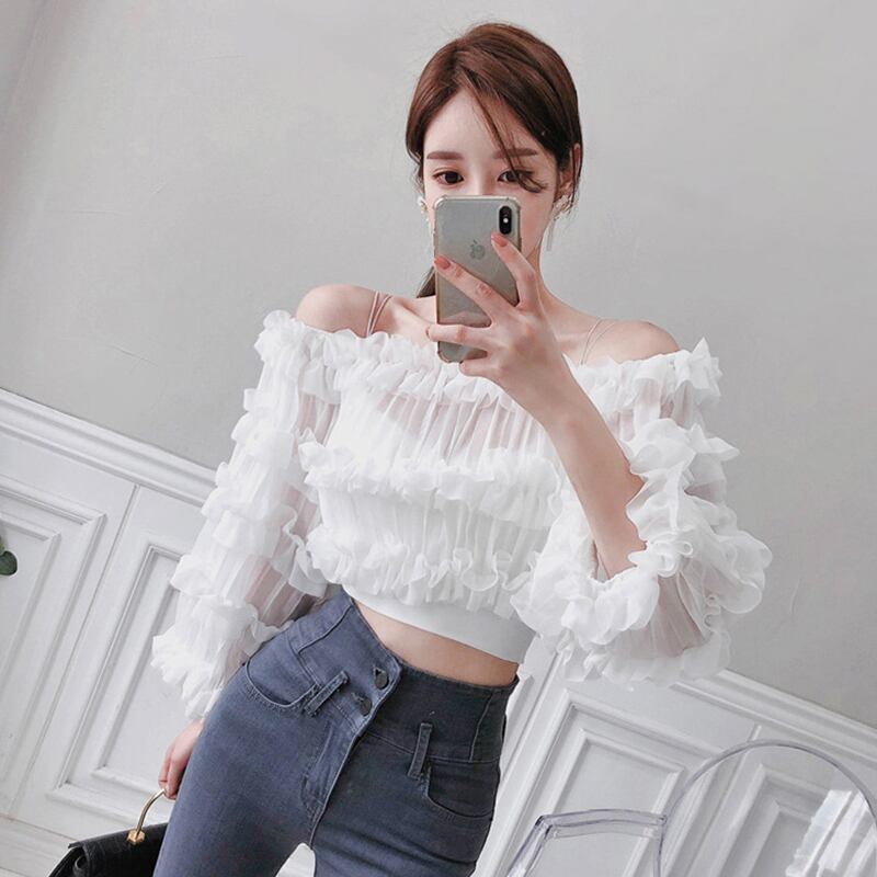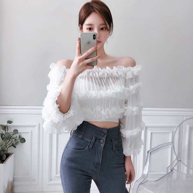 新着comtableシフォンシャツ気質ヴィンテージエレガントな個性短い視点セクシーな白いシャツ ショート ホワイト ビンテージ