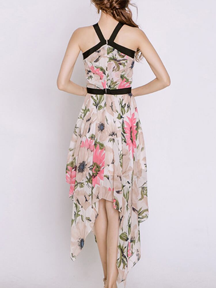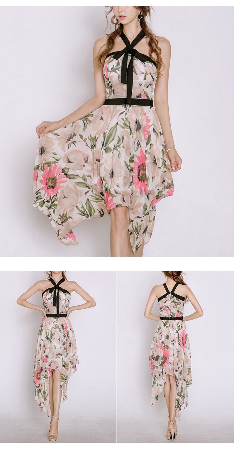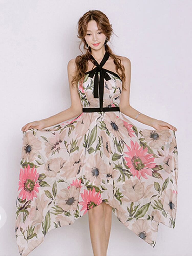 女性のイブニングドレス甘い花セクシーなホルターオフショルダーミディパーティー休暇ウエディングレディローブ Vestido 大人ガーリー スウィート キュート カジュアル 花柄