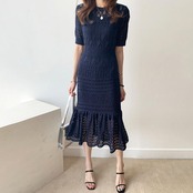 新着ファッションセット女性秋エレガントな弾むセクシーな中空アウトニットボディコンマーメイドドレスツーピースセット オータム 秋物