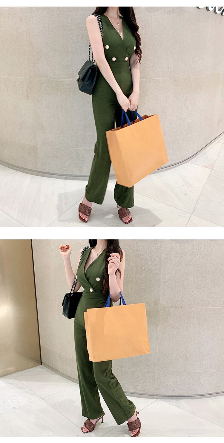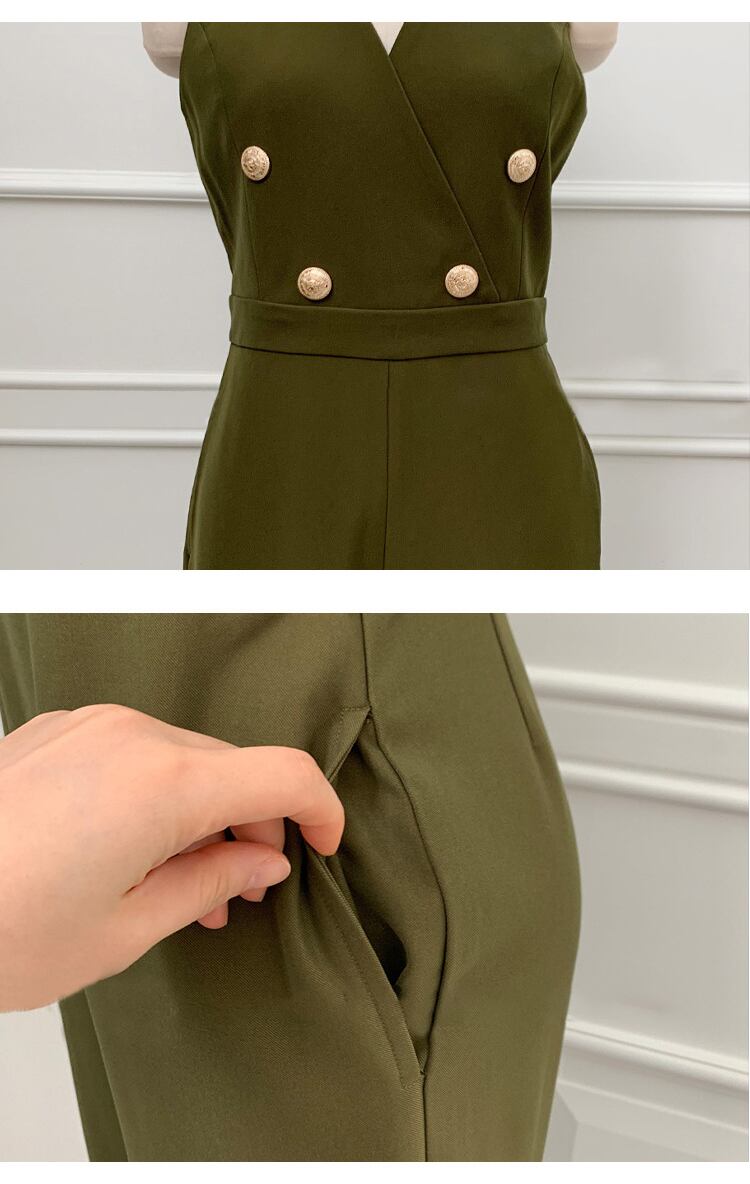 新着ファッション夏ジャンプスーツ女性ノースリーブオフィスレディワークスタイル気質シンプルな Armygree ロングジャンプスーツ サマー 夏物 会社 学校 通勤や通学にも