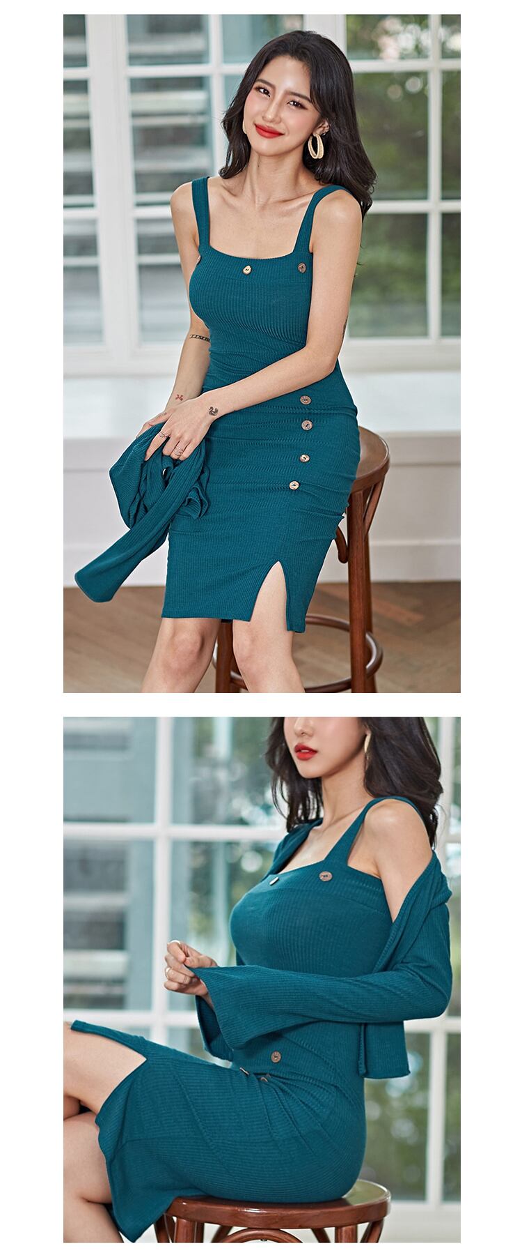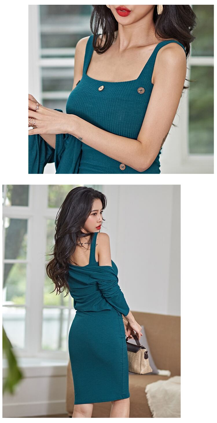 春秋 2 ピース衣装女性カーディガントップスセクシーなストラップバックレスボディコンスキニーミディドレスストリートストレッチセット スプリング 春物 オータム 秋物