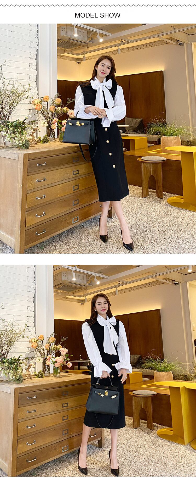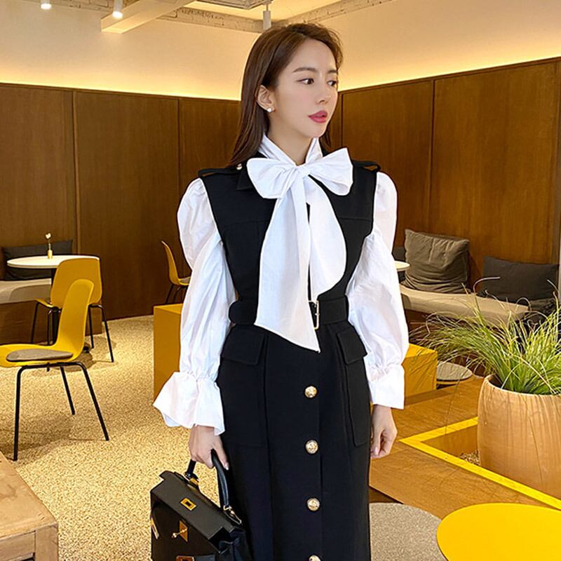 新着マル女性セットゆったり白シャツとノースリーブ厚手のペンシル ドレス ワーク スタイル 2 ピース女性セット ホワイト