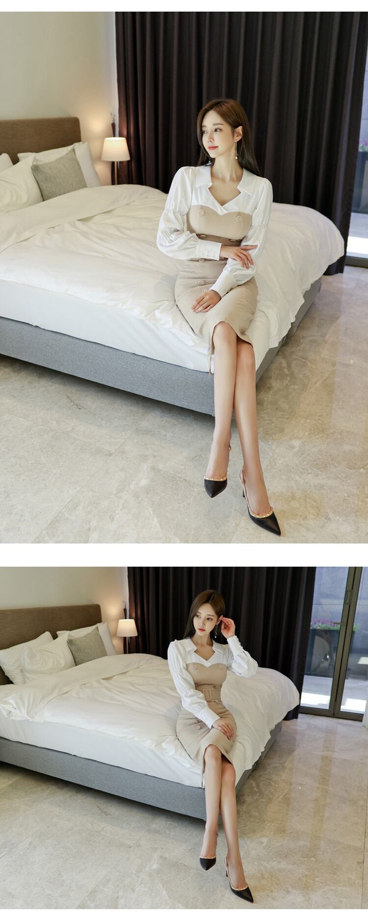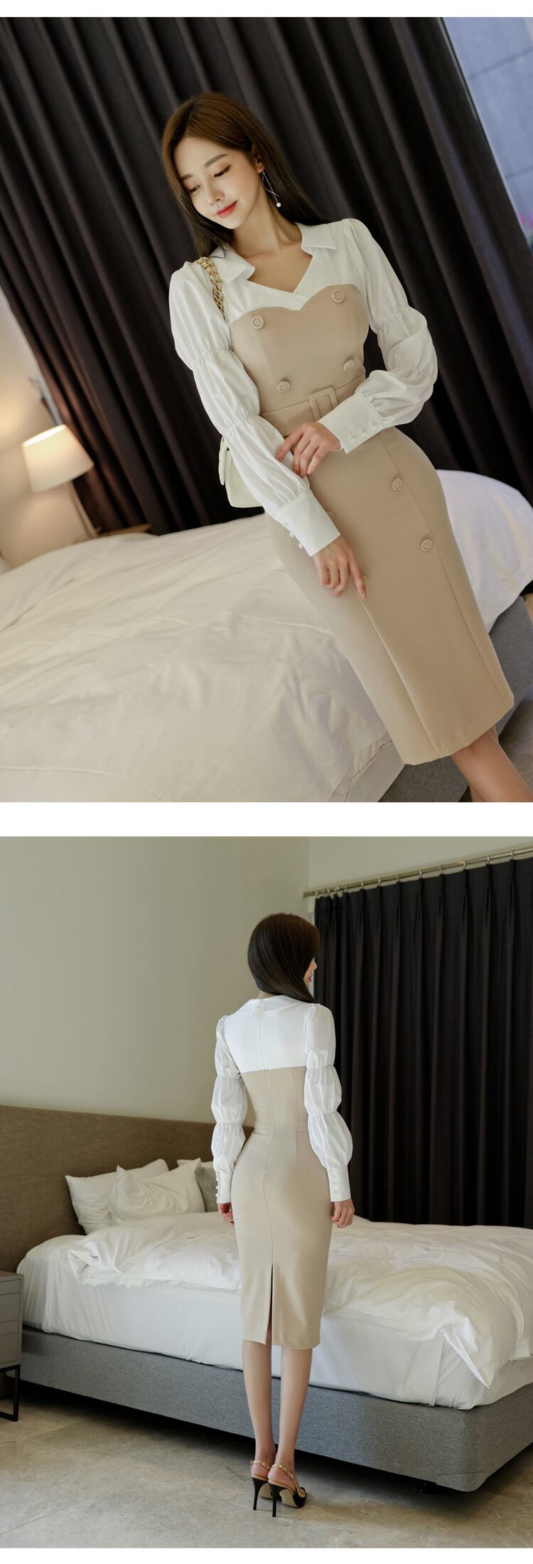 新着ファッション春秋の女性スリム気質年齢削減ステッチダブルブレストランタンスリーブペンシルドレス スプリング 春物 オータム 秋物