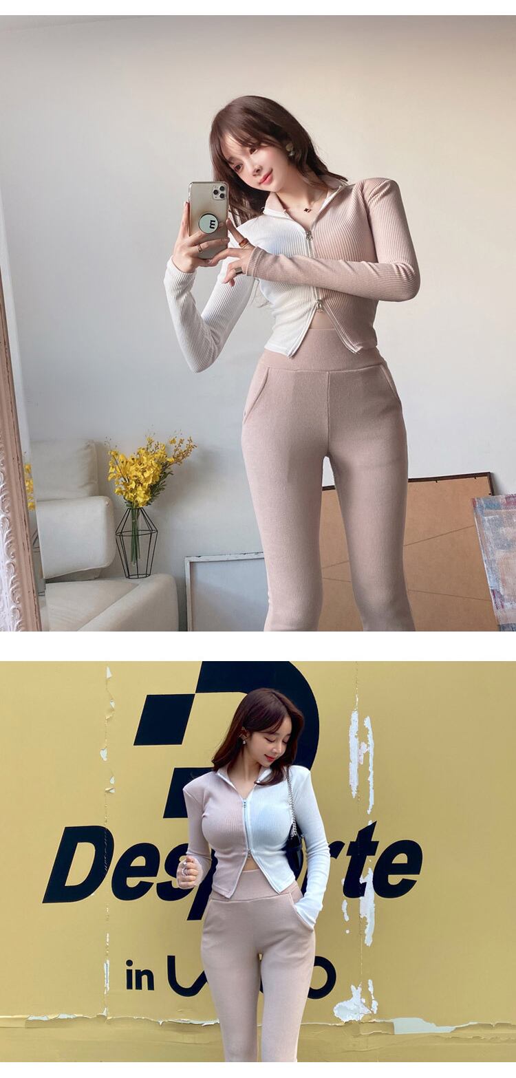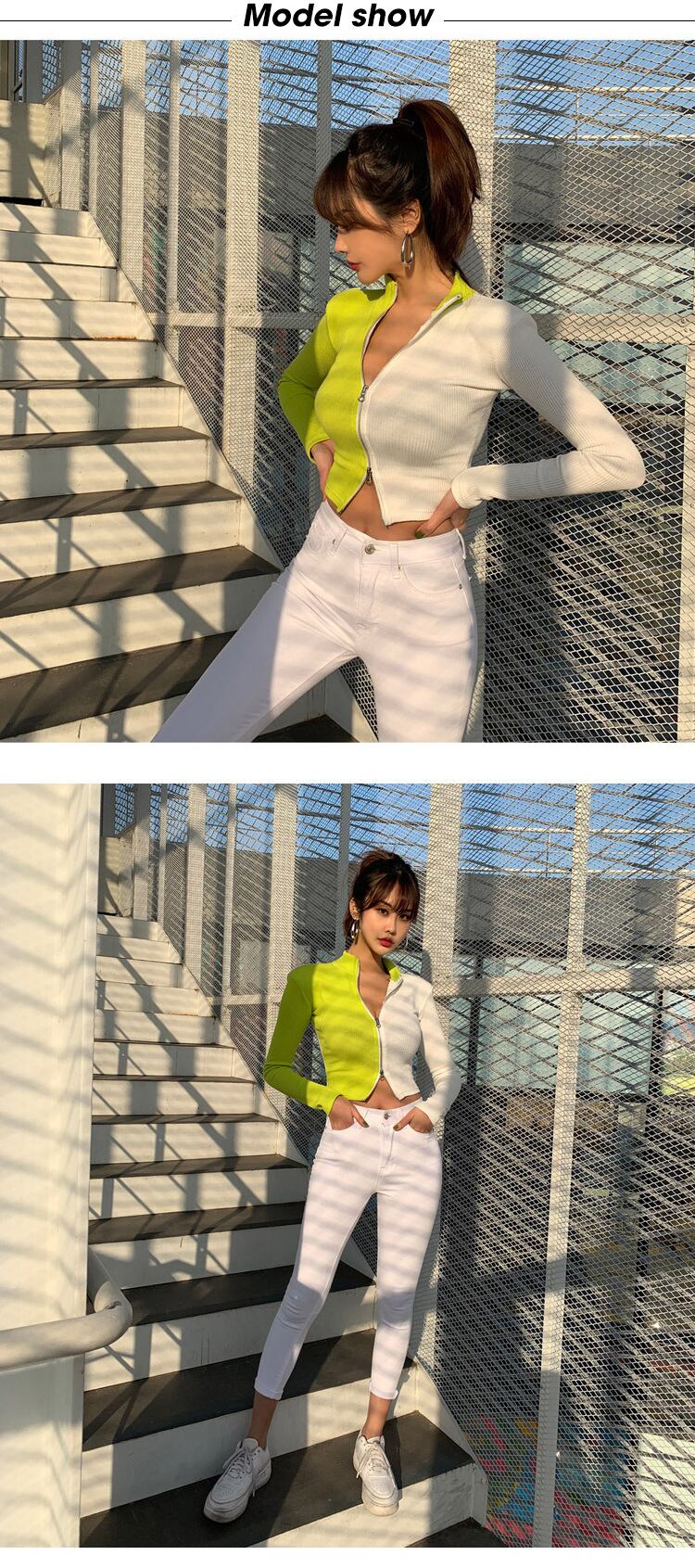 春ストリート女性底入れスリムリブジッパーへそトップスインナーマッチ服スキニーショート Tシャツ スプリング 春物