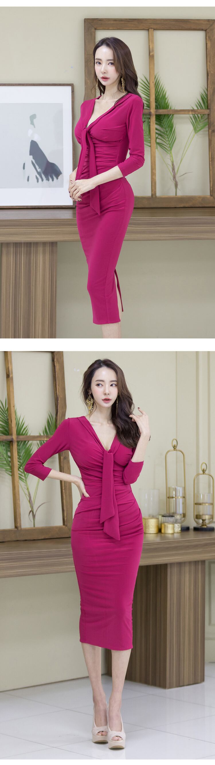 春 秋 着回し Vネック マルワンピース テンペラ系 ワークスタイル 無地 可愛い スリム オフィスレディ ペンシルワンピース 大人ガーリー スウィート キュート カジュアル スプリング 春物 オータム 秋物 ソリッドカラー 会社 学校 通勤や通学にも