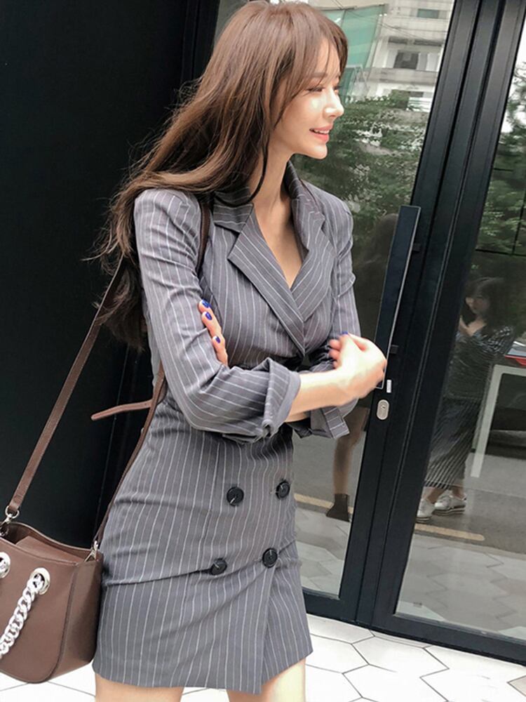 女性ドレス気質マルレトロダブルブレストスリムミニパーティー通勤ブレザー Vestidos 春秋 スプリング 春物 オータム 秋物