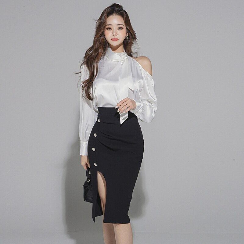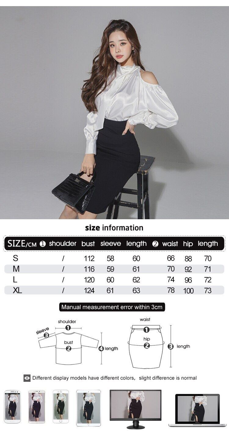 新着comtableワークスタイルの女性セット気質緩いオフショルダーセクシーなシャツとスリムなペンシルスカートのエレガントなセット