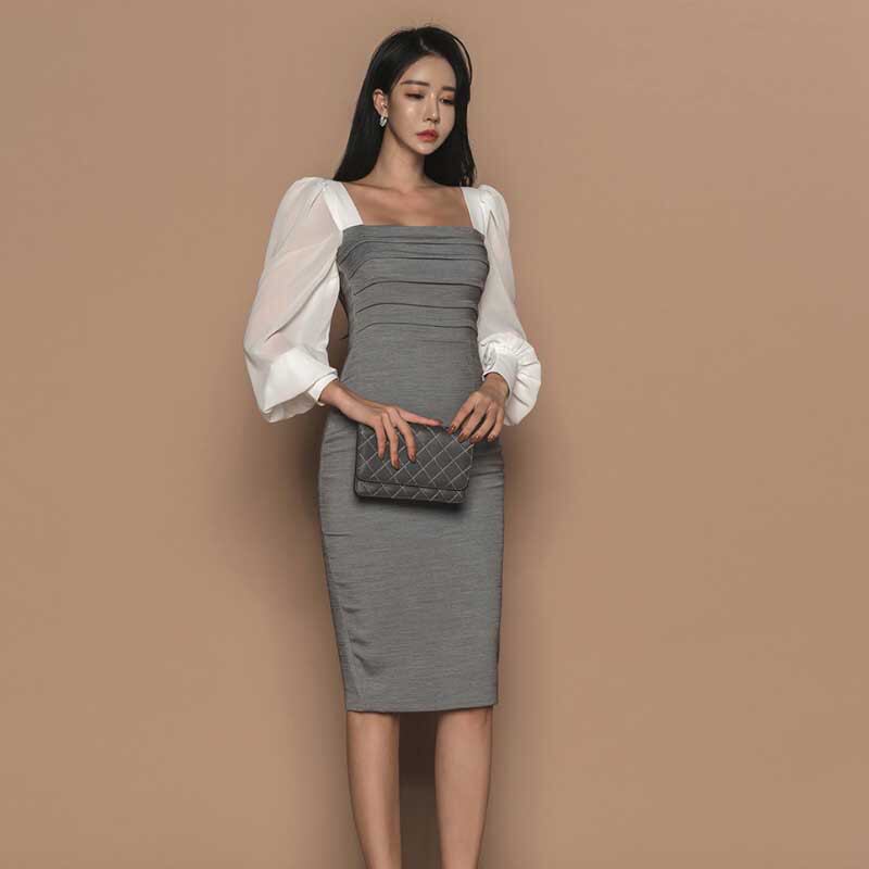 女性新着エレガントなヴィンテージパッチワークマルドレス気質comtableスリムセクシーなペンシルドレス ビンテージ