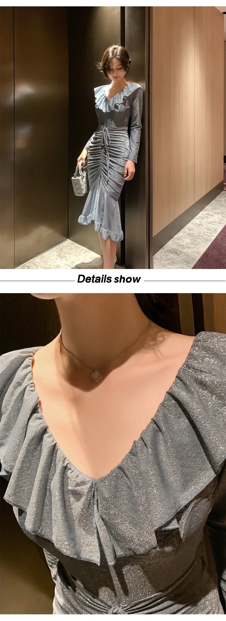女性新着comtableセクシーmalトランペットドレスヴィンテージパーティーエレガントなニットシャイニングマーメイドドレス ビンテージ