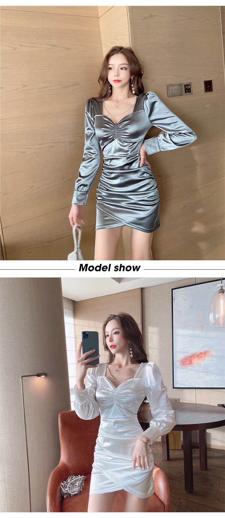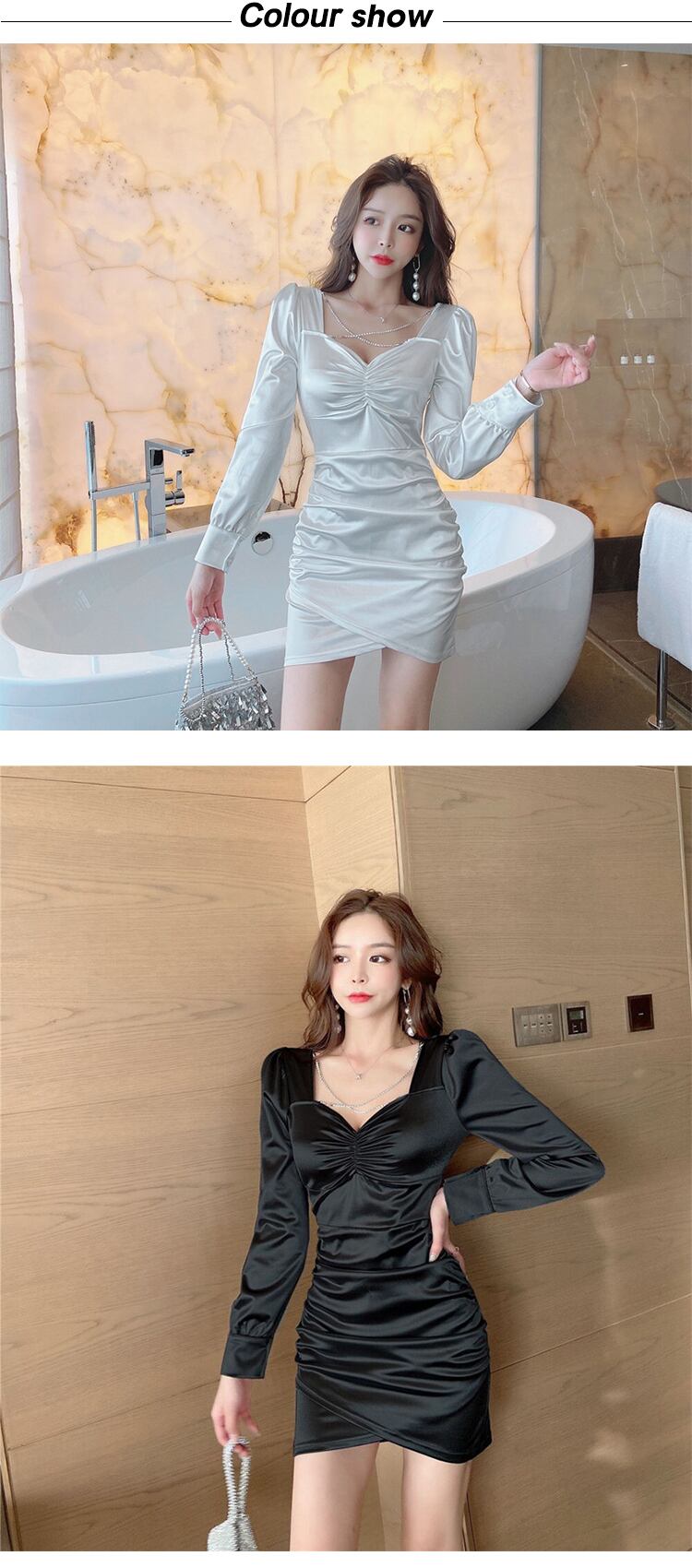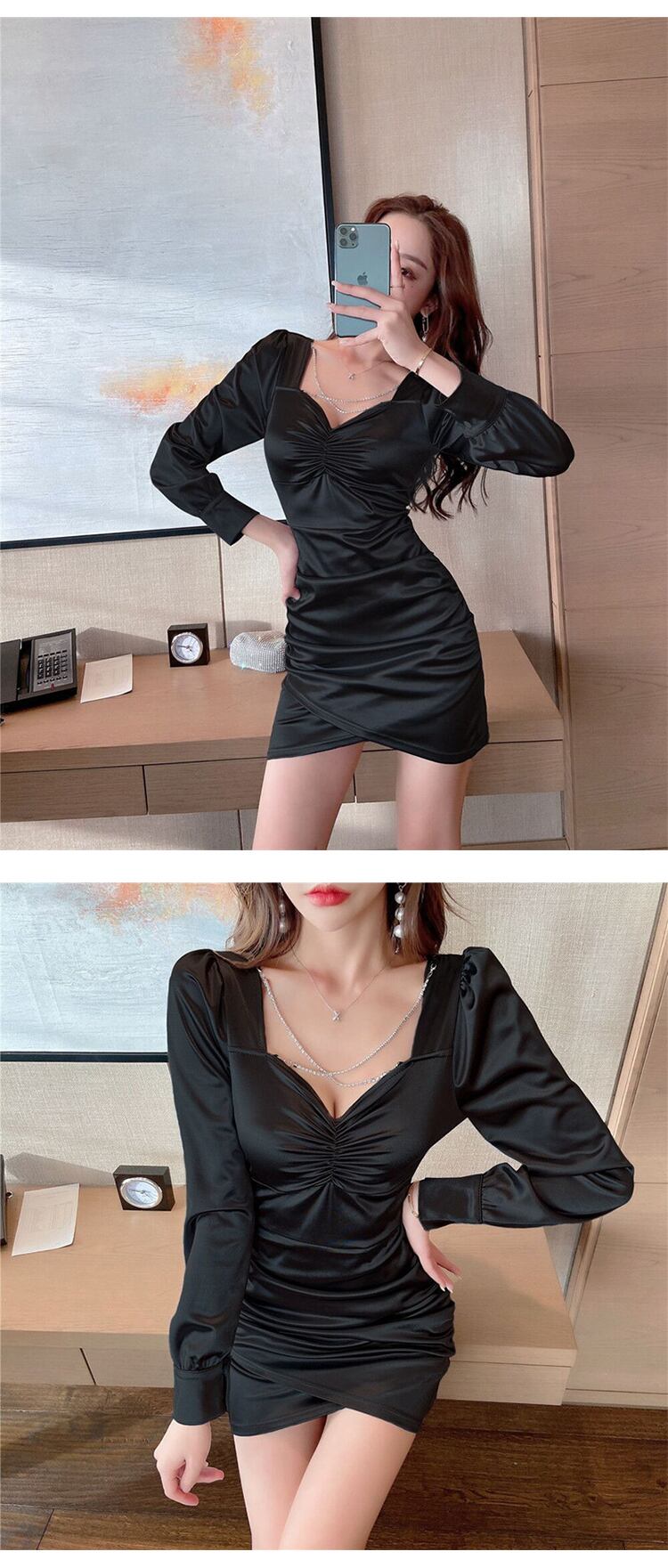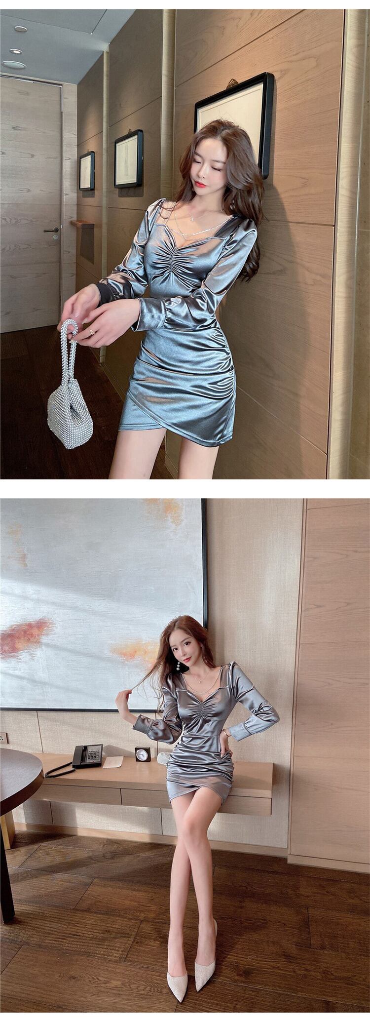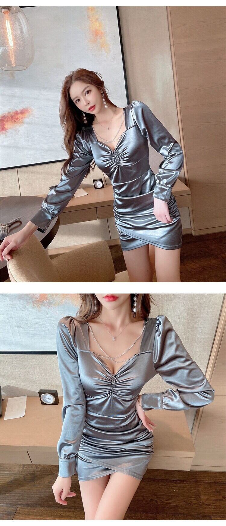 新着ファッション春パーティーナイトクラブミニドレス女性 OL 気質アセテートローカット v ネックプリーツ非対称ドレス スプリング 春物 Vネック