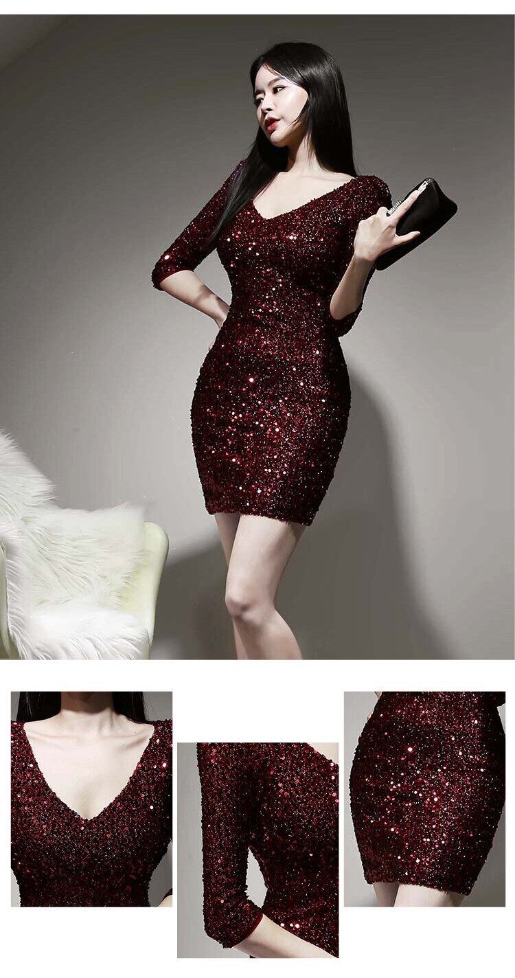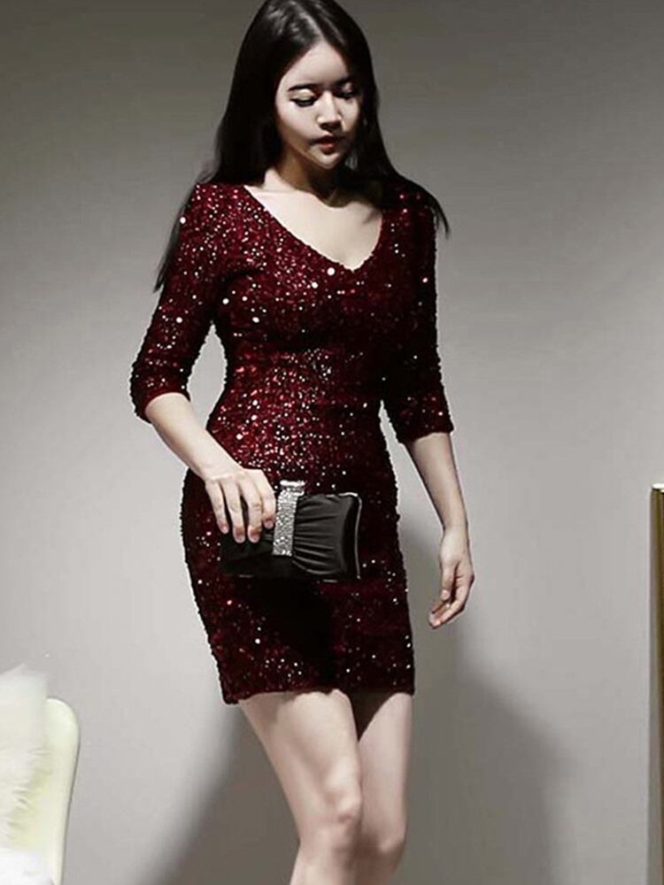 新着ファッション韓国春パーティーミニドレス女性 OL プロ気質シャイニースパンコール赤スリム a ラインドレス レッド スプリング 春物 Aライン