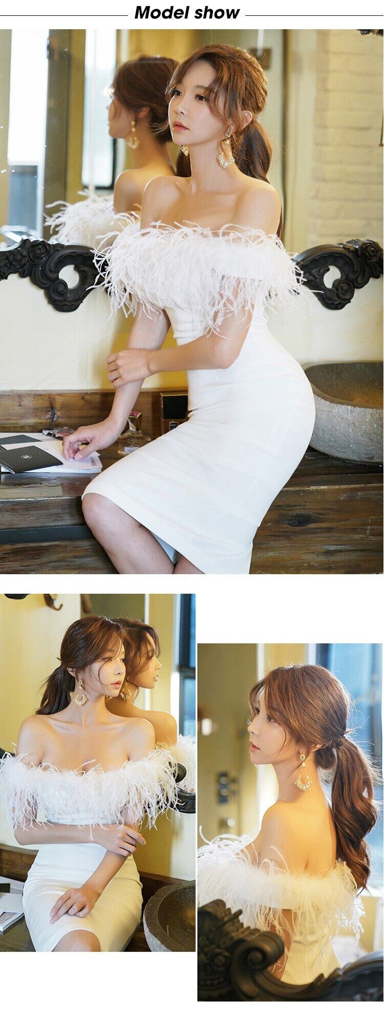 女性イブニングミディドレス羽セクシーなスラッシュネックボディコンスキニースリムクラブレディウェディングローブ Vestido