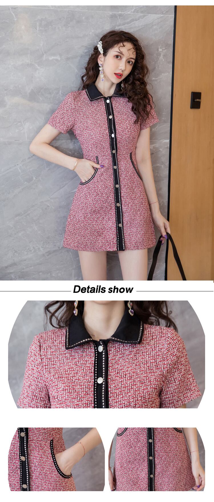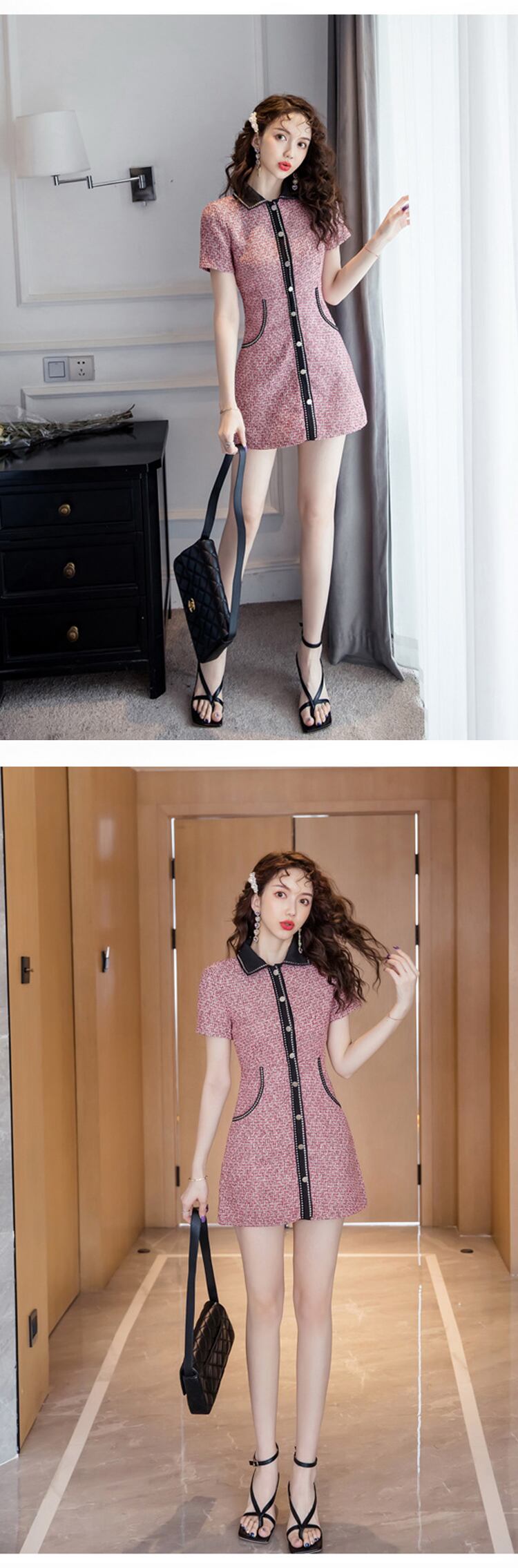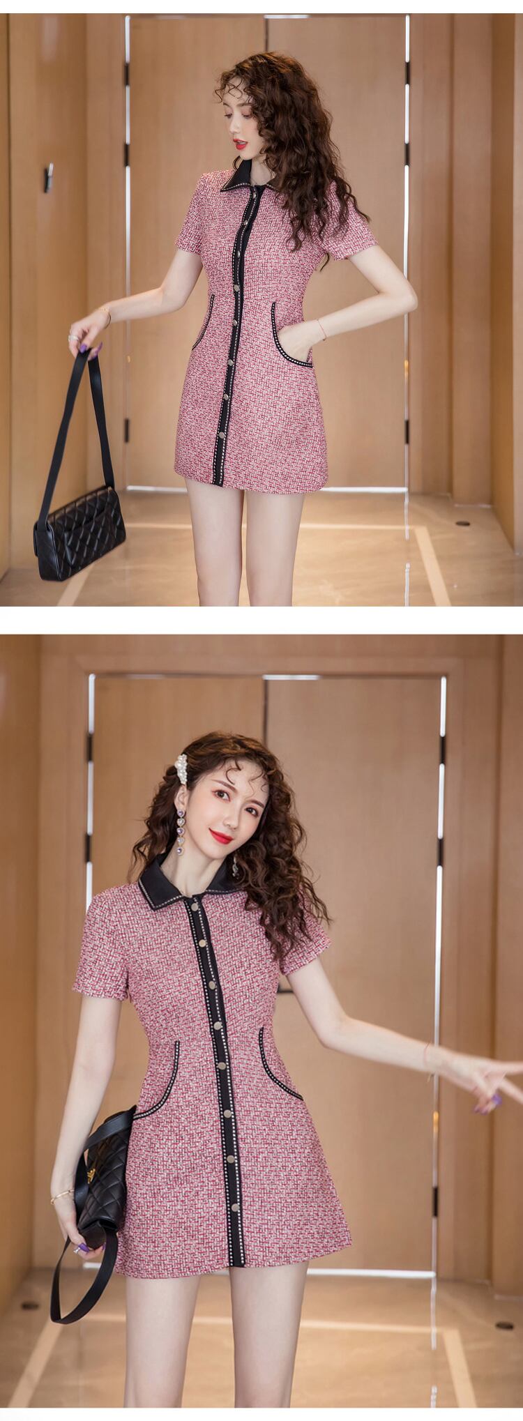 新着ファッション夏ミニ パーティー ドレス女性気質エレガント シングル ブレスト チェック柄ピンク甘い休日ビーチ スリム ドレス 大人ガーリー スウィート キュート カジュアル サマー 夏物