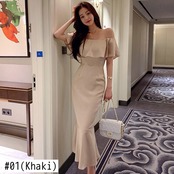 夏のドレスの女性レディセクシーなオフショルダーフリルマーメイドスリムミディパーティーイブニングビーチローブ Vestidos サマー 夏物