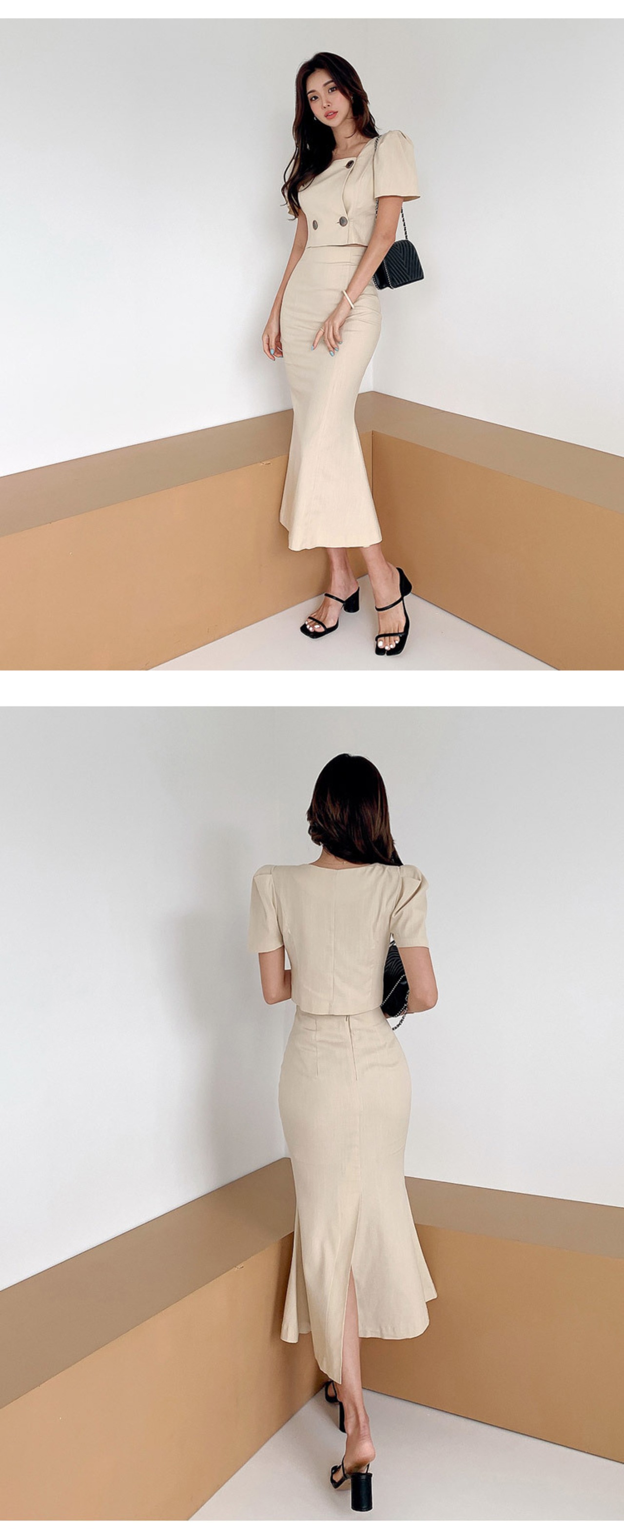 2点セット女性レディシンプルなダブルブレスト半袖ショートクロップトップスシャツパッケージヒップスカート衣装 ハーフスリーブ