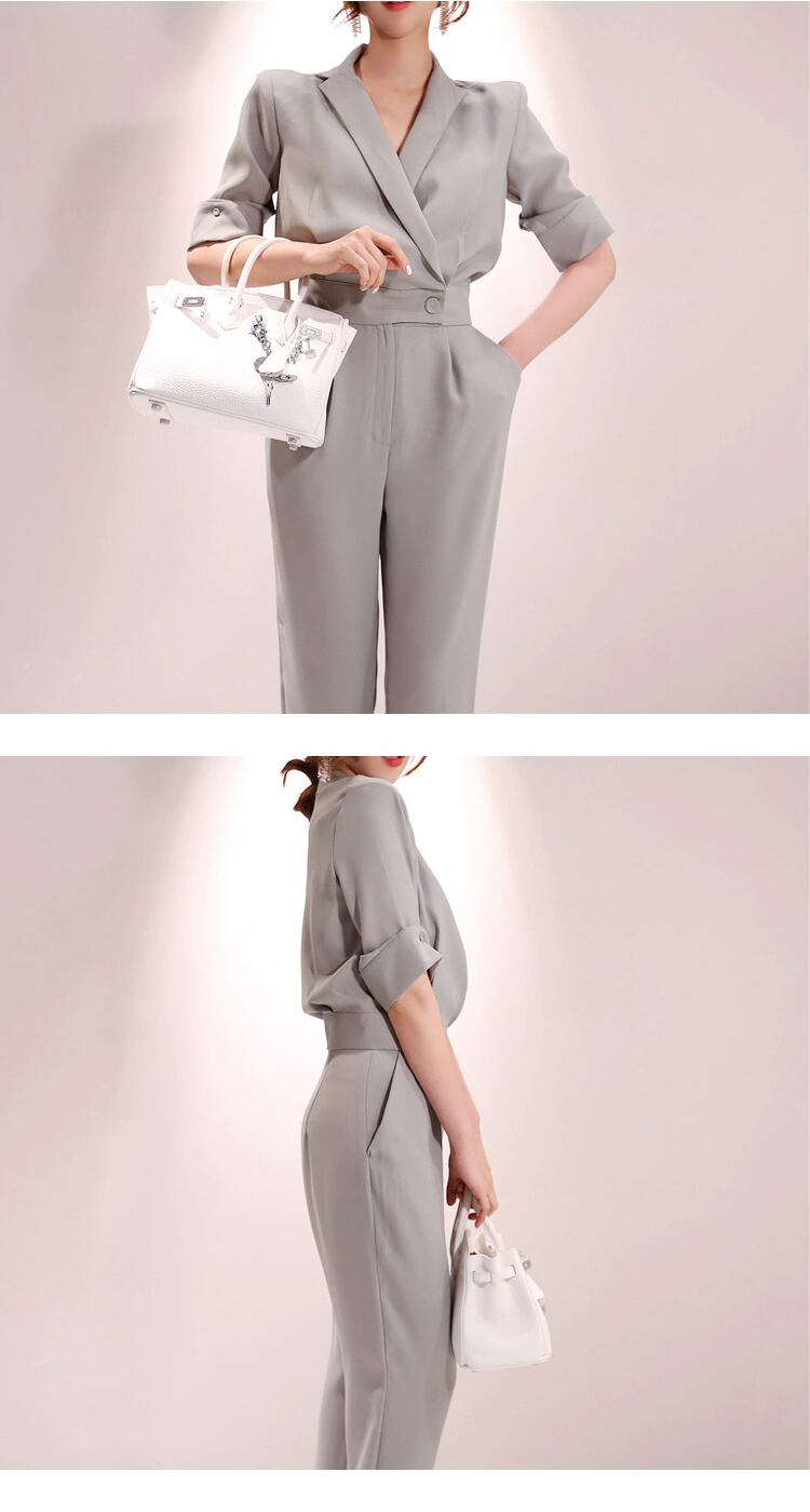 新着ファッション夏ジャンプスーツ女性 OL エレガントな半袖ストリートスタイルの気質シンプルなシフォンスリムジャンプスーツ ショート ハーフスリーブ サマー 夏物