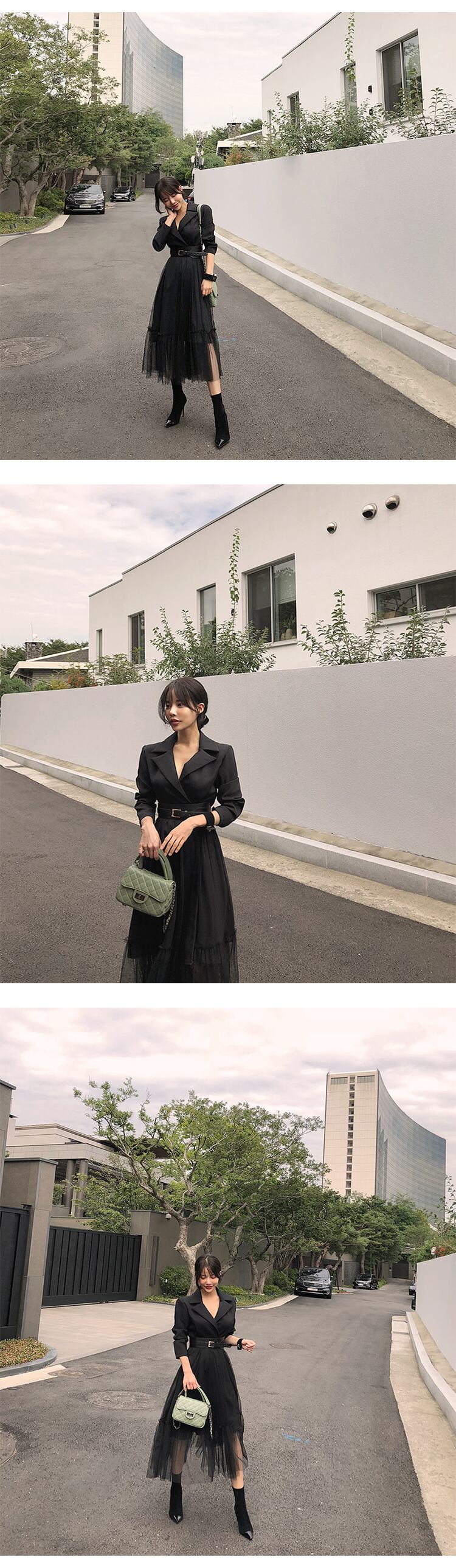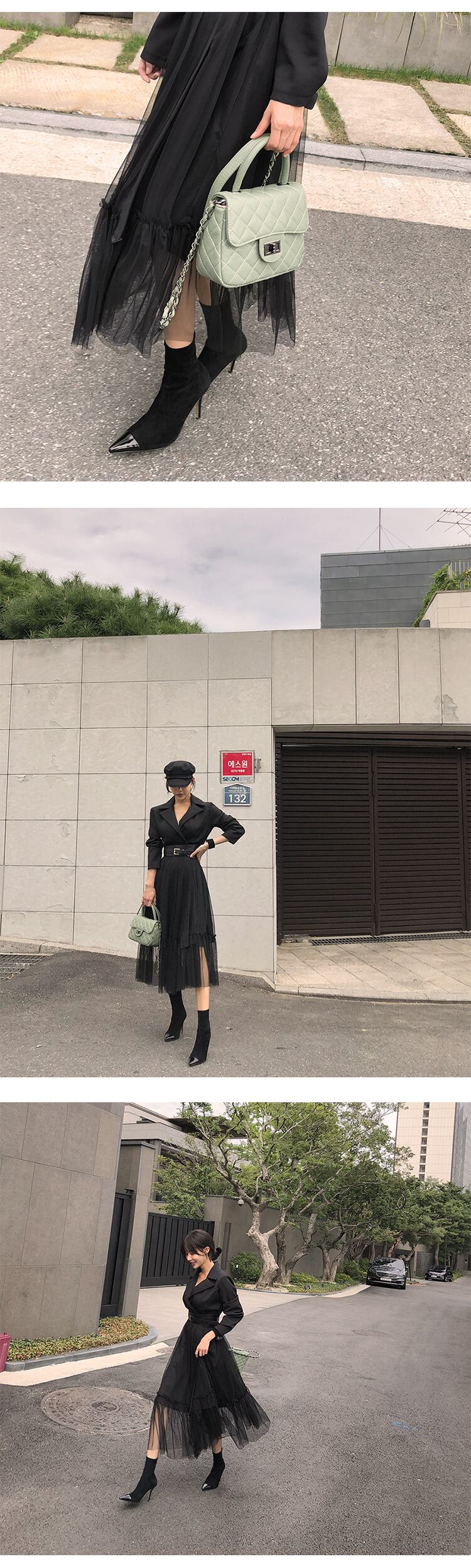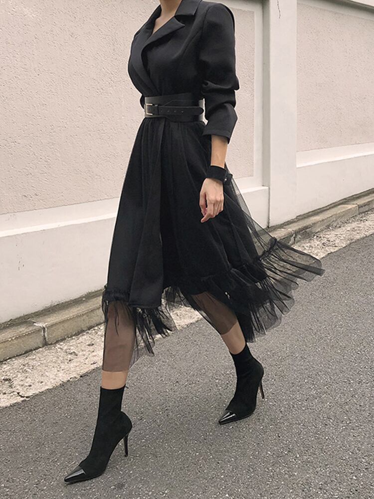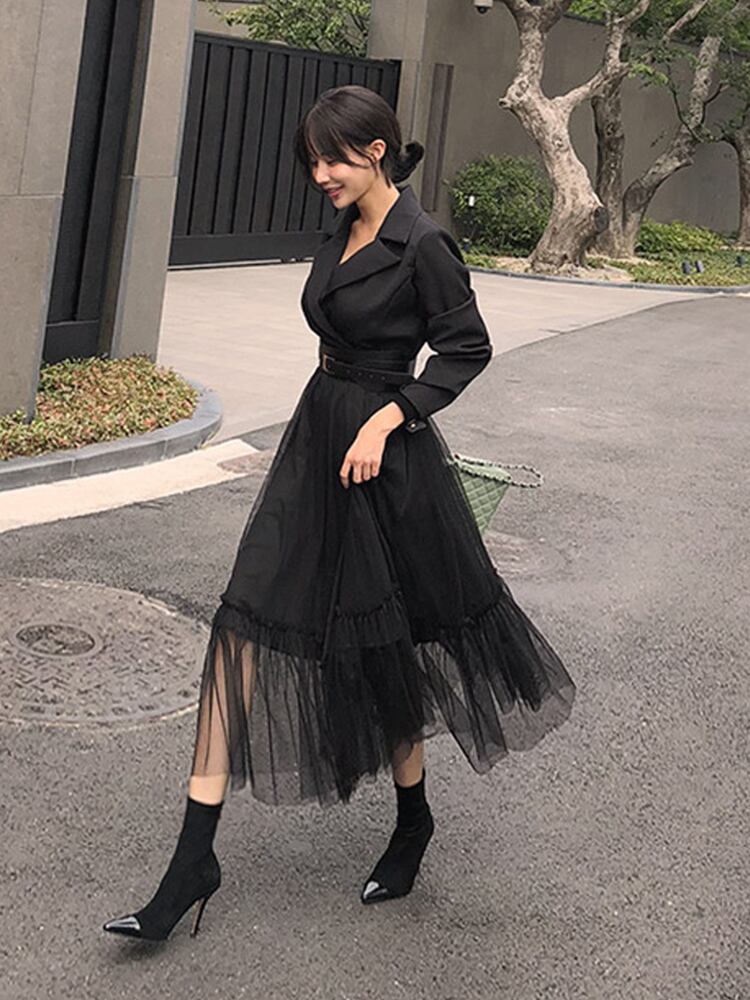 女性ドレスシックな黒気質マルベルトスリムミディパーティークラブウエディングローブ Vestidos ブラック ハーネス