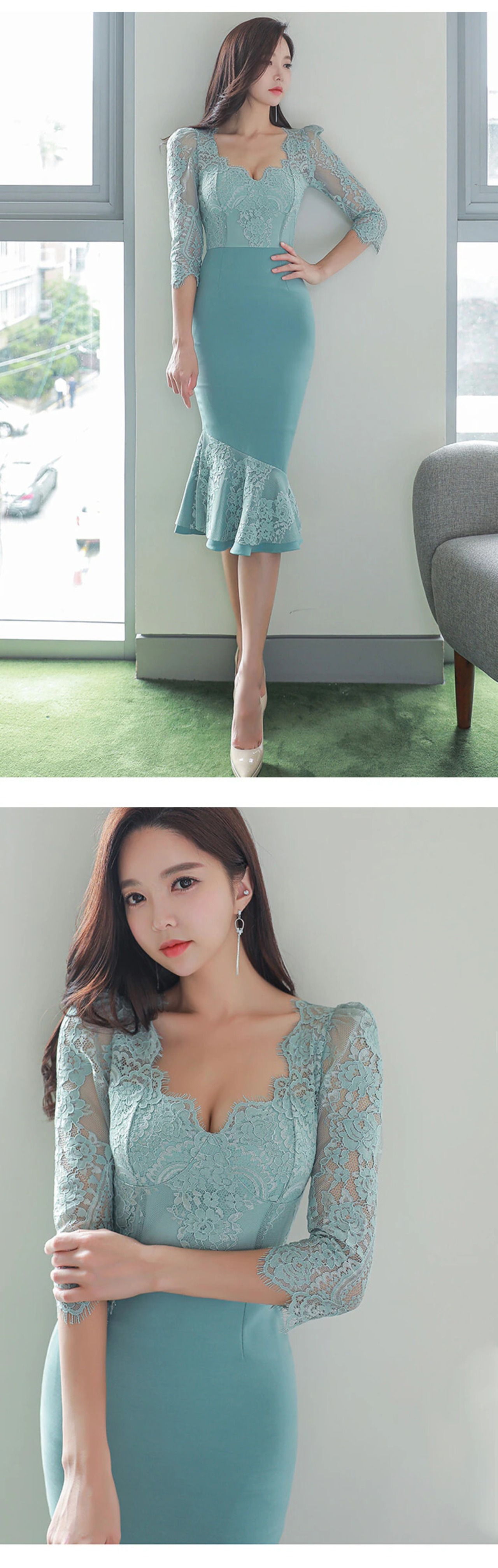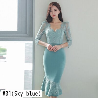 新着comtable固体マルドレス気質レース視点ヴィンテージエレガントセクシーなかわいいオフィスロングトランペットドレス 大人ガーリー スウィート キュート カジュアル ソリッドカラー ビンテージ 会社 学校 通勤や通学にも
