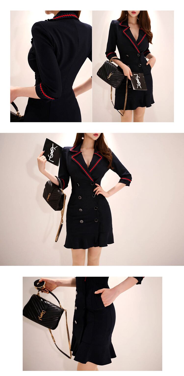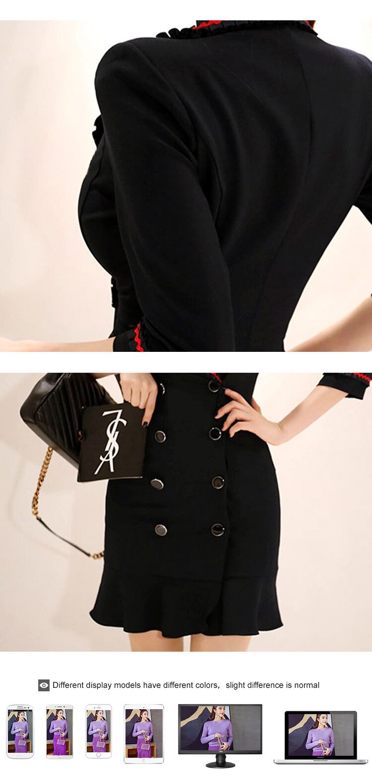 オフィスの女性のドレス黒気質マルノッチネックフリルスリムミニパーティー通勤レディ Vestidos ブラック 会社 学校 通勤や通学にも