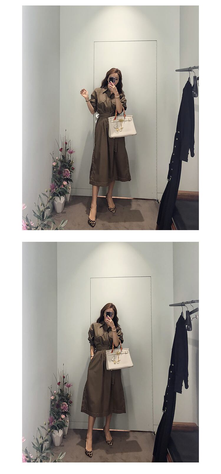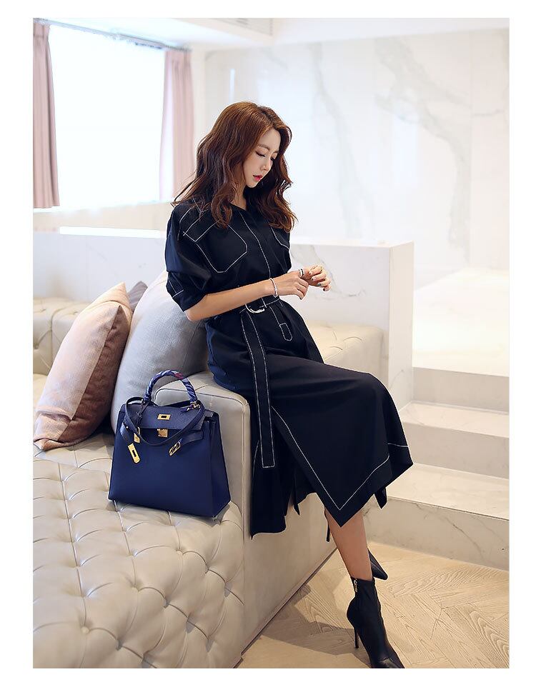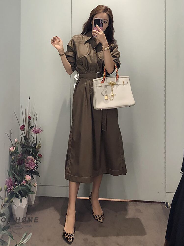 女性ドレス シックな気質マル ルーズ ベルト スリット ミディ ストリート通勤ローブ Vestidos ハーネス