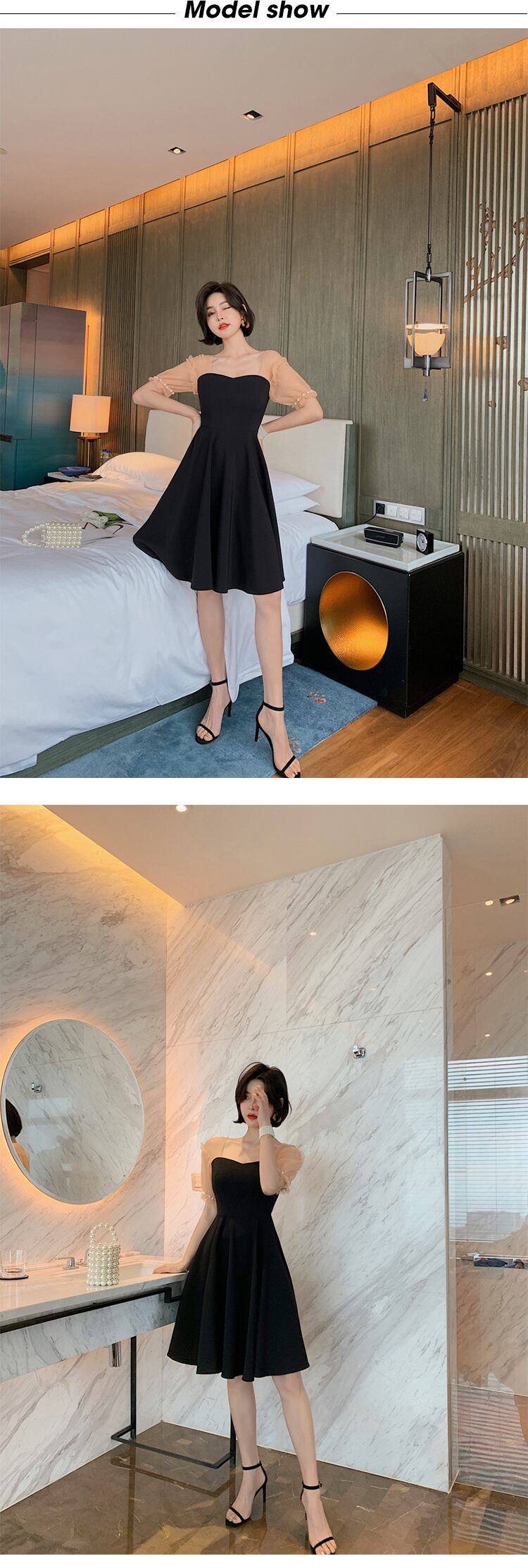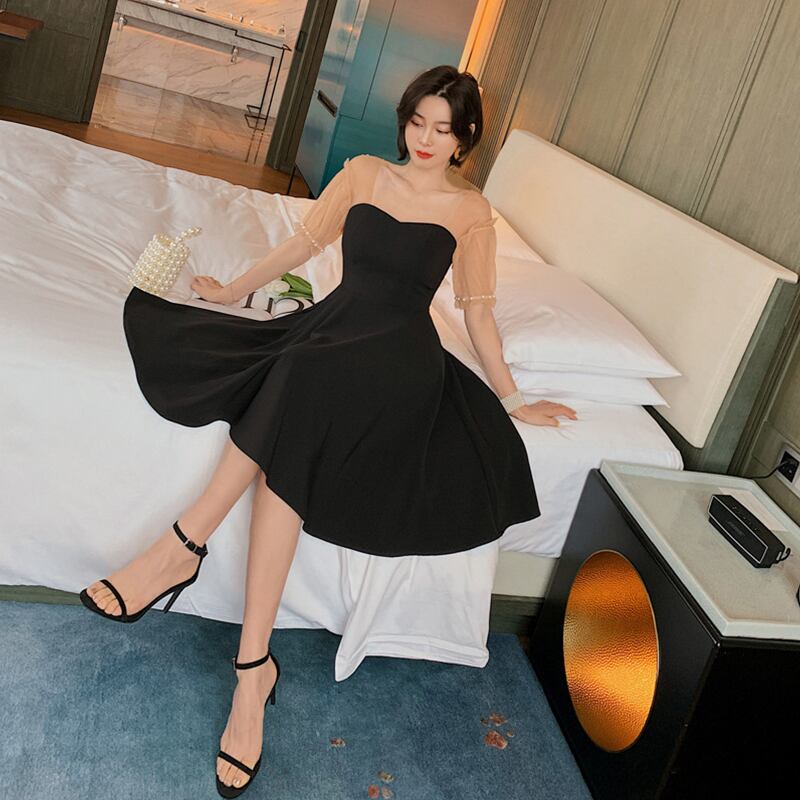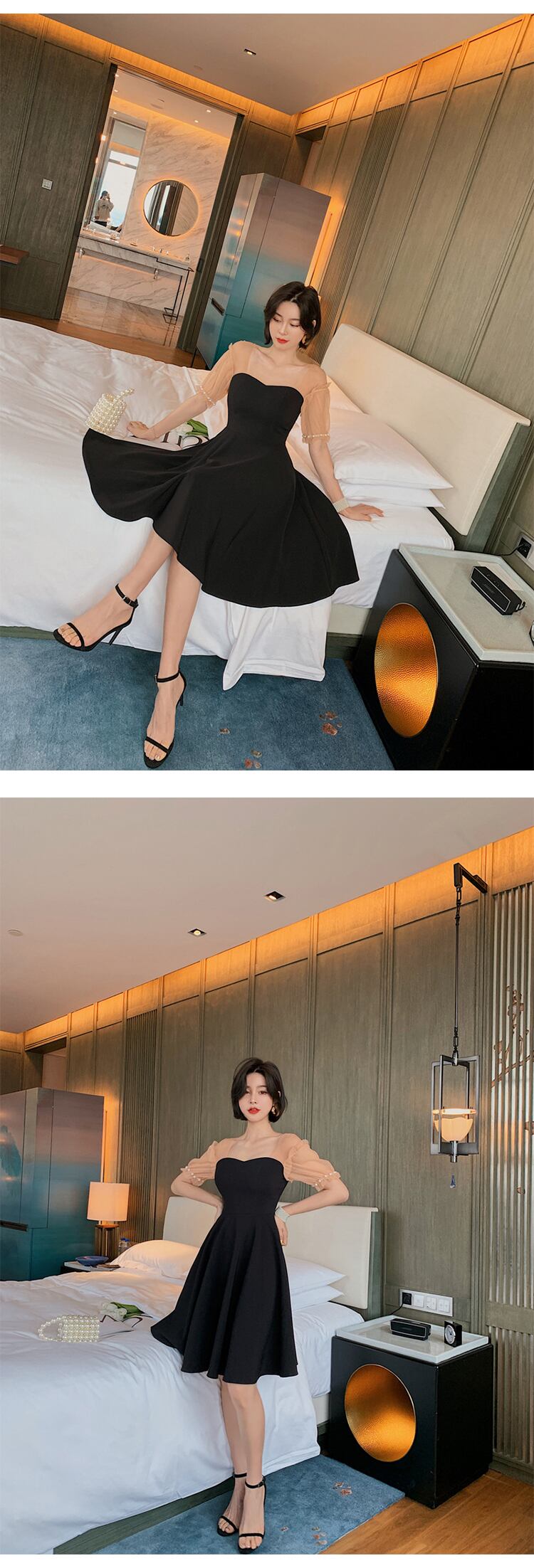 新着ファッション パーティー ドレス女性エレガントな夏のセクシーな視点メッシュ シンプルな気質オフィス レディ balck a ライン ドレス サマー 夏物 Aライン 会社 学校 通勤や通学にも