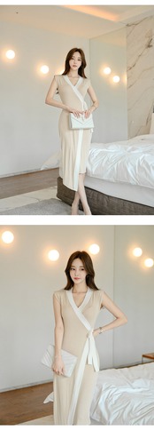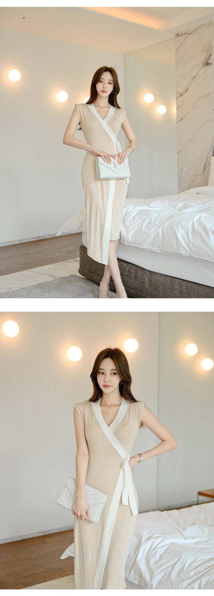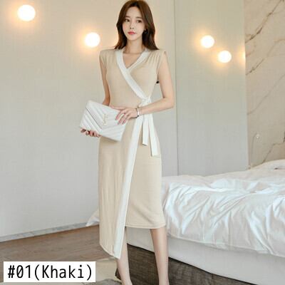 新着ファッション ラップ ドレスエレガントな夏の v ネック ノースリーブ シンプルな気質オフィス レディ a ライン ミディ ドレス サマー 夏物 Vネック Aライン ソリッドカラー 会社 学校 通勤や通学にも