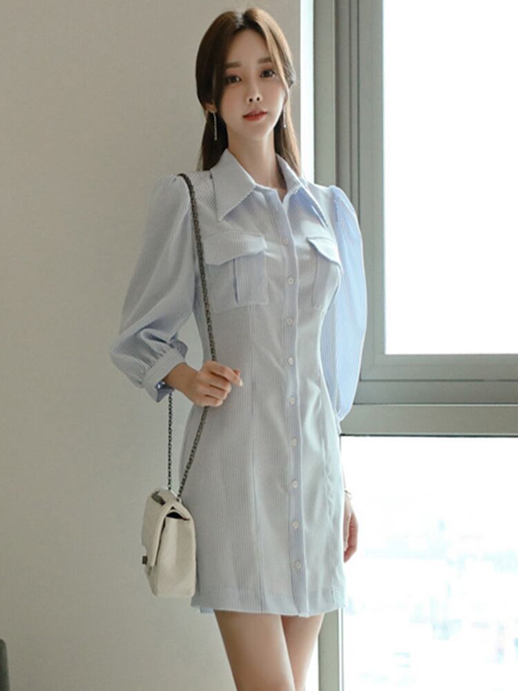 春秋シングルブレストマルワンピース新作エレガントヴィンテージワークスタイルストライプ可愛いミニAラインワンピ 大人ガーリー スウィート キュート カジュアル スプリング 春物 オータム 秋物 ビンテージ