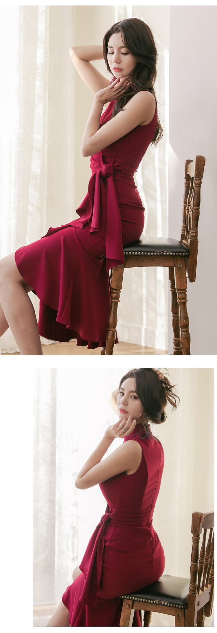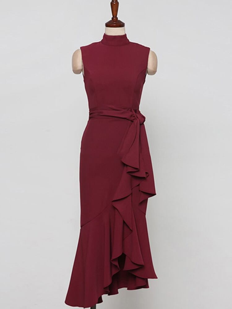 新着ノースリーブセクシーなマルトランペットドレスヴィンテージパーティーエレガントなワイルドクラブ中空アウトフリルマーメイドドレス ラッフル ビンテージ