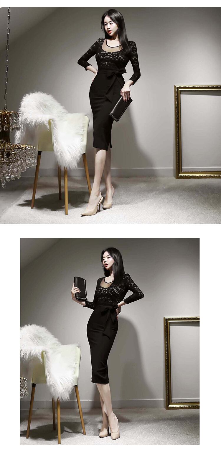 新着ファッション春パーティーナイトクラブドレス OL 職業気質黒のセクシーな視点スリムペンシルドレス ブラック スプリング 春物