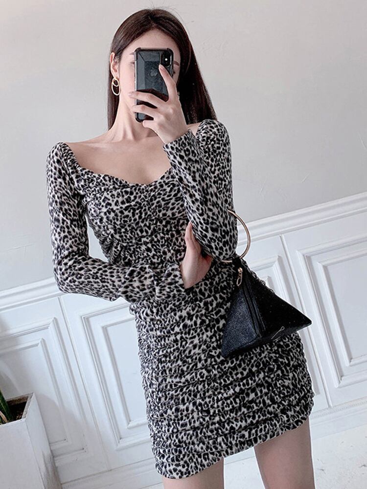 新着ファッションcomtableミニマルドレスエレガントヴィンテージワークスタイルヒョウベーシックセクシーペンシルドレス ビンテージ