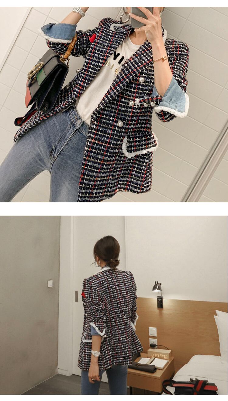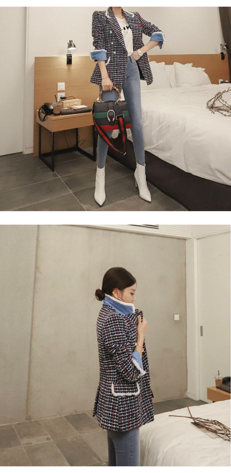 コートシックな気質レトロダブルブレストターンダウン襟チェック柄ツイード生き抜くジャケット