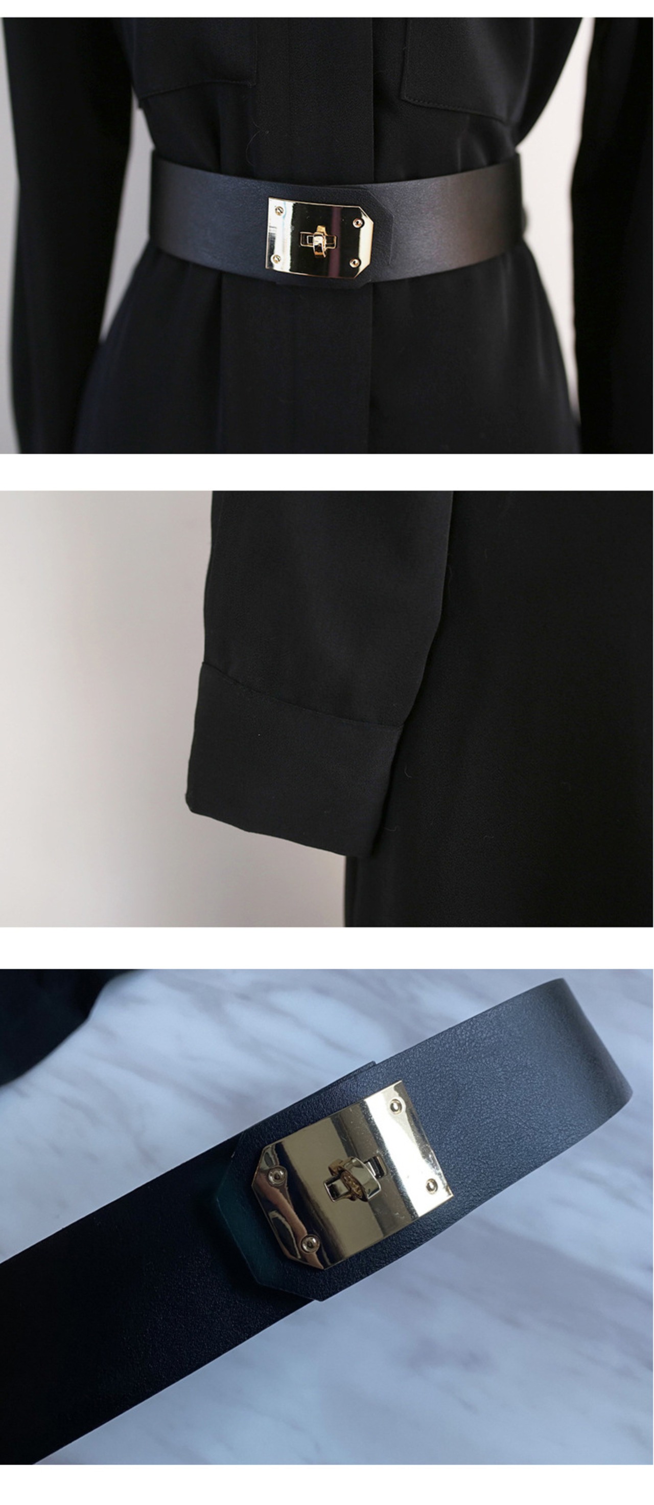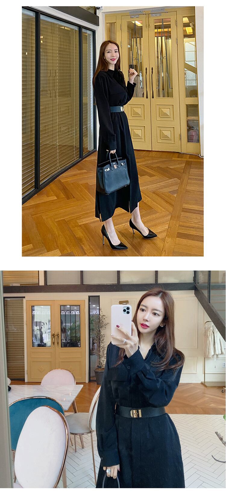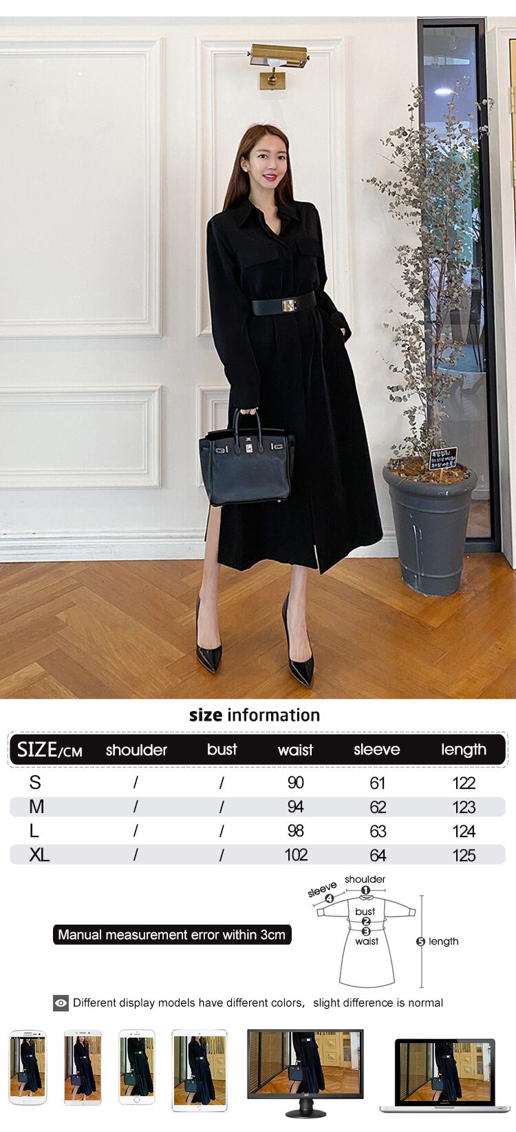新着ファッション春ミディ ドレス OL 気質カジュアル ターン ダウン襟シングル ブレスト緩い黒 a ライン ドレス ブラック スプリング 春物 Aライン
