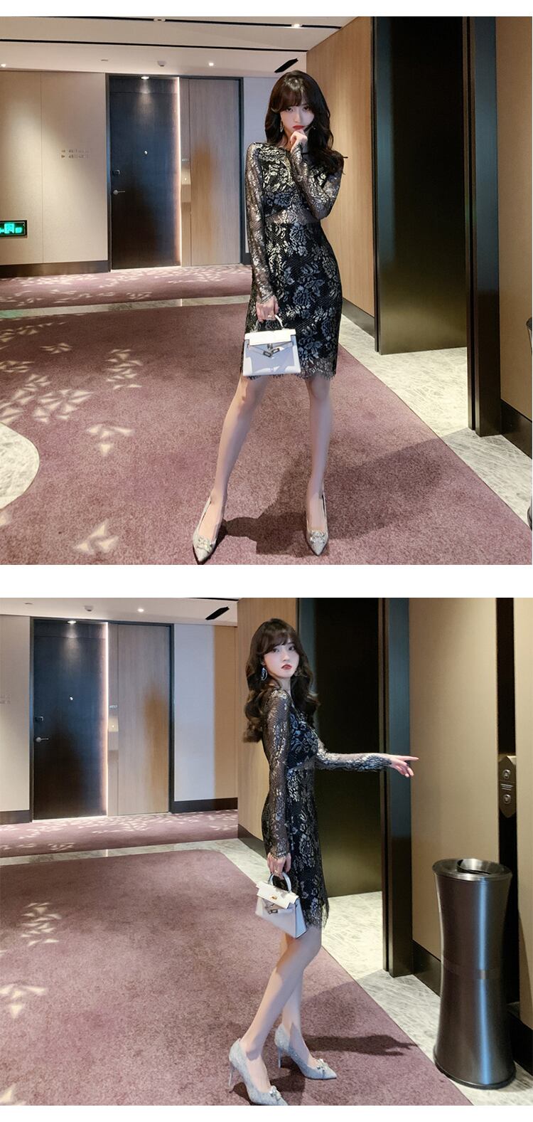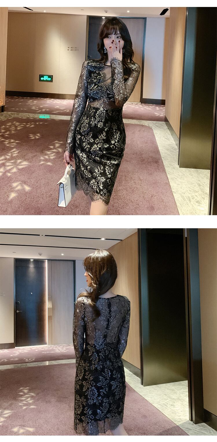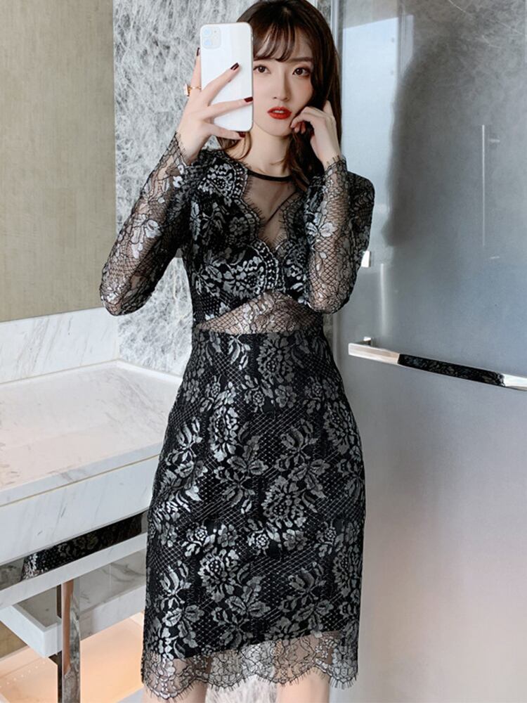 春 秋 レース 透視 マルドレス 気質 ワークスタイル ヴィンテージ 上品 かわいい スリム ペンシルドレス 大人ガーリー スウィート キュート カジュアル エレガント スプリング 春物 オータム 秋物 ビンテージ