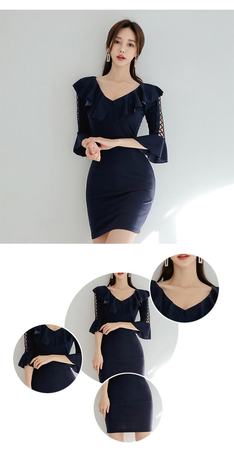 新着カジュアルフリル v ネックマルドレス comtable パーティー中空アウトミニセクシーなペンシルドレス ラッフル Vネック