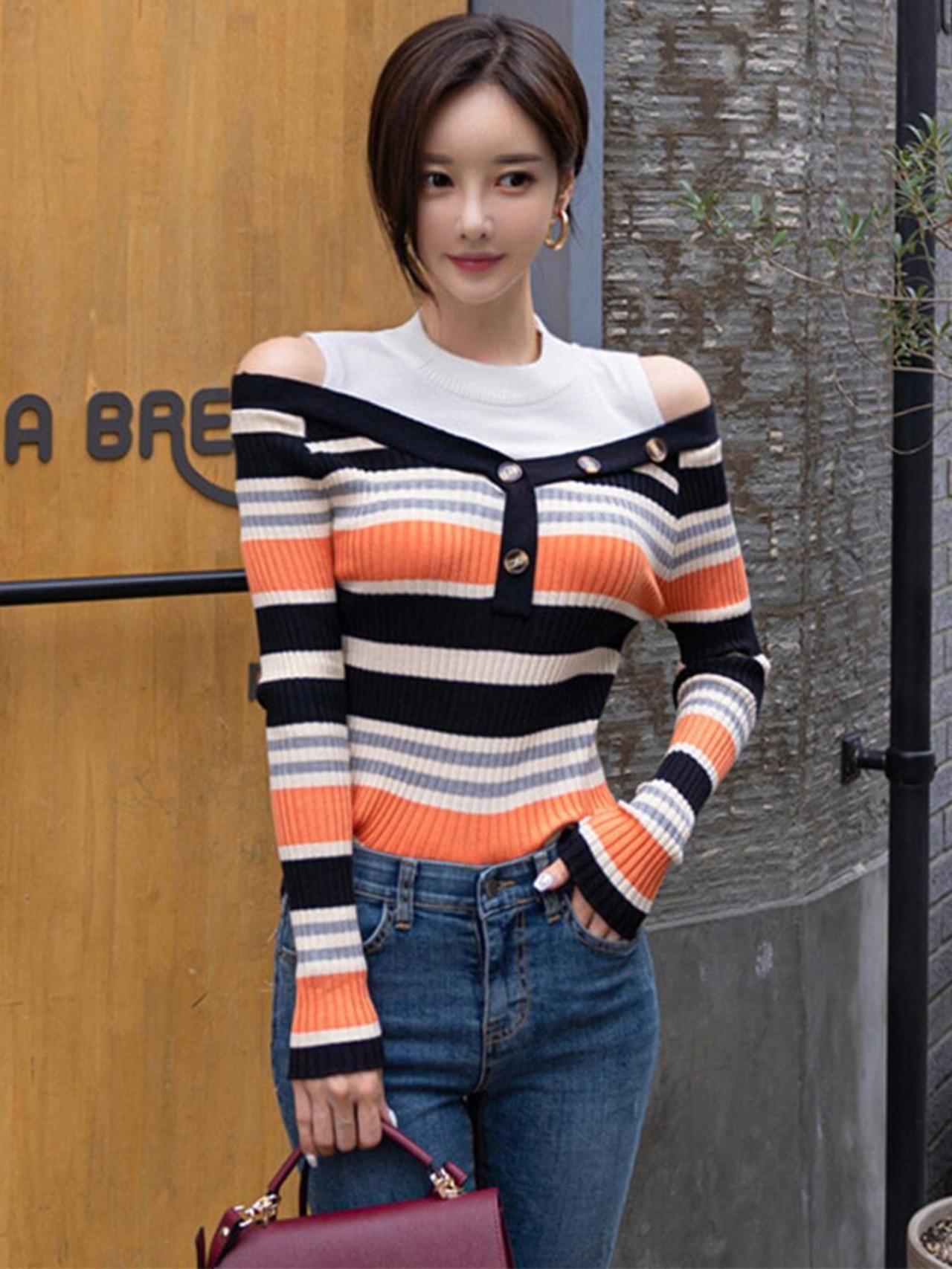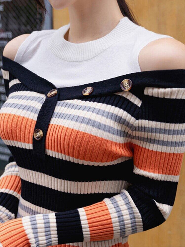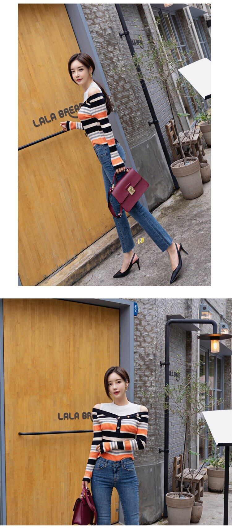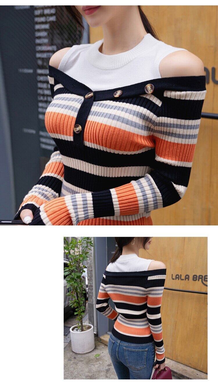 MingJieBiHuo 新到着カジュアルニットストライプシャツファッション野生厚く暖かい弾むかわいい comtableslim ベーシックシャツ 大人ガーリー スウィート キュート