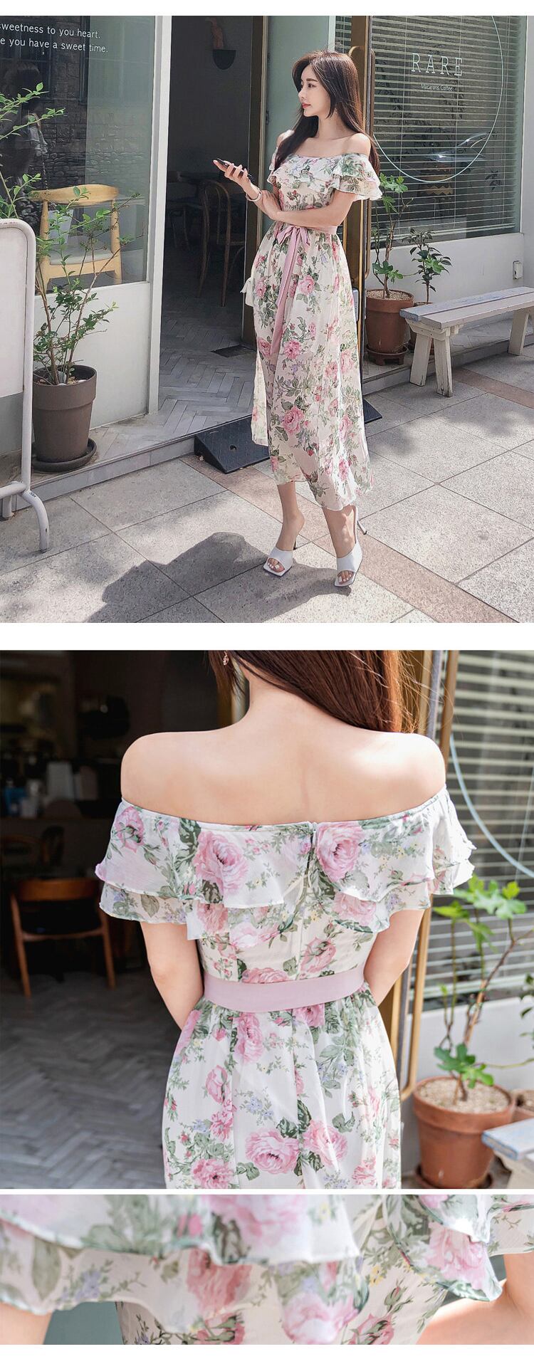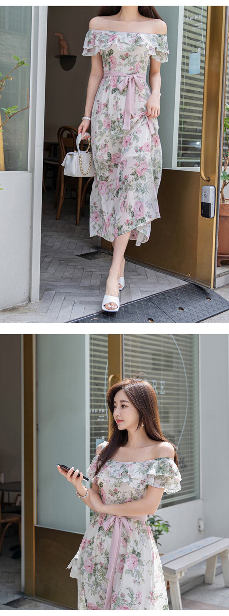 新着ファッションビーチドレスエレガントな夏のセクシーなスラッシュネック気質オフィスレディスウィートプリントシフォン a ラインドレス 大人ガーリー キュート カジュアル サマー 夏物 Aライン 会社 学校 通勤や通学にも