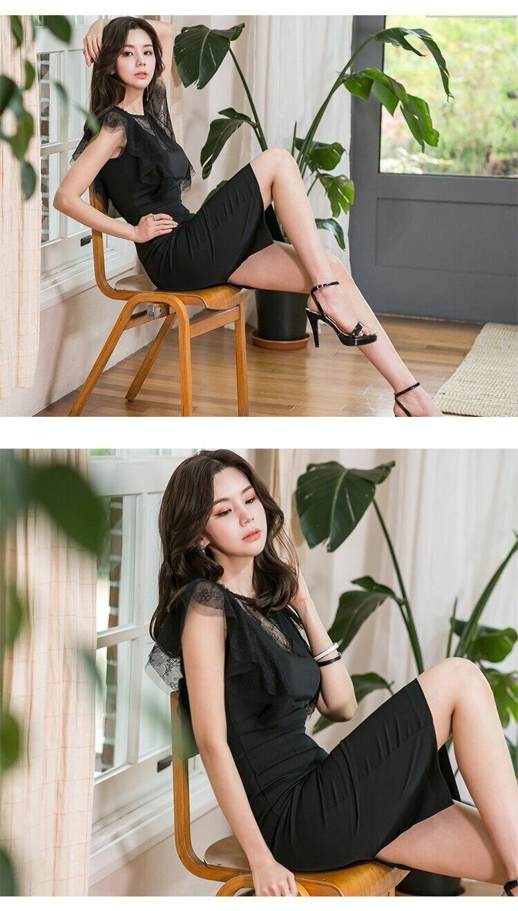 新着ファッション韓国スタイル パーティー ドレスエレガント ヴィンテージ o ネック ノースリーブ気質黒スリム ペンシル ドレス ブラック Oネック ビンテージ