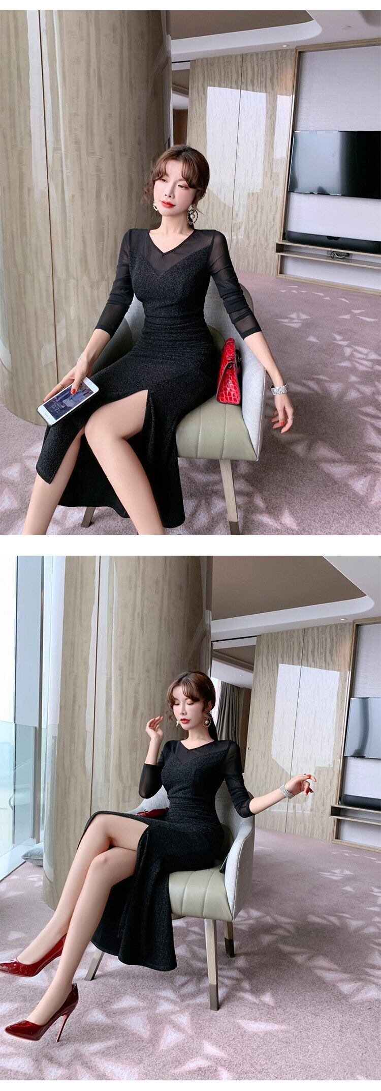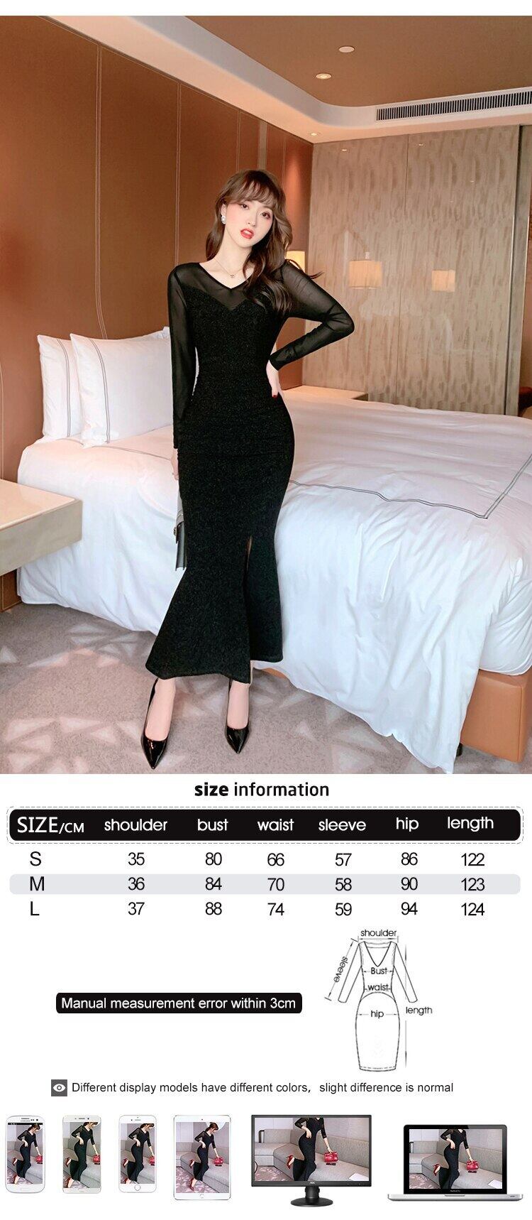 新着ファッション春ロングパーティードレス OL プロ気質セクシーな視点メッシュシャイニースリムマーメイドドレス スプリング 春物